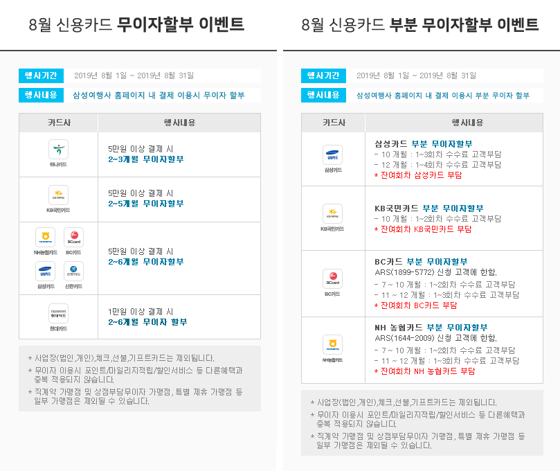 - 무이자 이용시 다른 혜택(각 카드사 혜택)과는 중복 적용되지 않습니다.