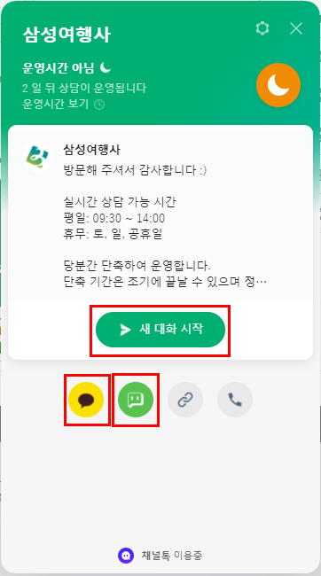 (카카오톡) 이나 (네이버톡톡) 클릭시 기존 고객님께서 사용하고있는
