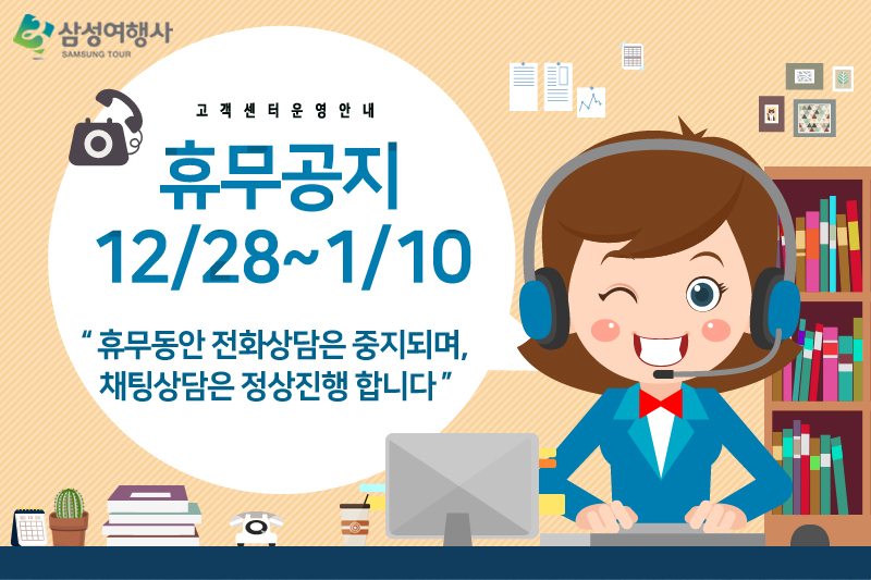 12/28~1/10까지 휴무로 인해 전화상담이 중지되며, 채팅상담은 정상진행 합니다.