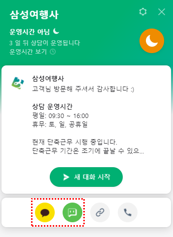 (카카오톡) 이나 (네이버톡톡) 클릭시 기존 고객님께서 사용하고있는