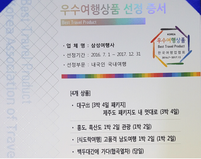 저희 삼성여행사가 서울과 각지역의 상품을 제치고