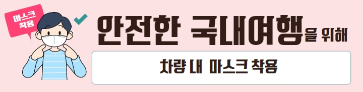 코로나19 감염병 등급이 2단계로 낮아짐에 따라 차량 내 마스크 착용만 적용됩니다.