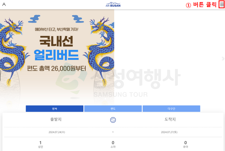 1. 홈페이지 오른쪽 상단 ①버튼 클릭!