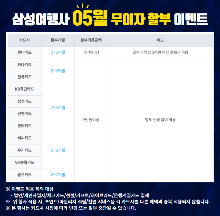 홈페이지에서 예약 후 결제 시 25년 5월 카드 무이자 할부 관련 안내 드리니 아래와 같이 확인부탁드립니다.