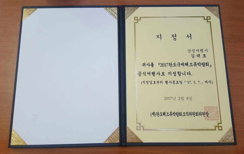 행사에 제안서를 제출하여~ 저희 삼성여행사가 2017완도국제해조류바람회 공식여행사로 선정되었습니다~ 짝짝짝짝~