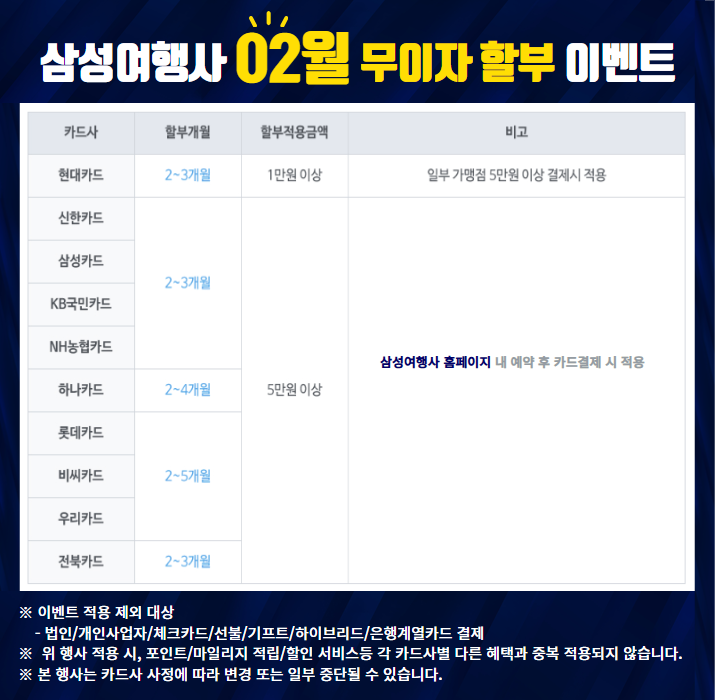 26년 02월 카드 무이자 할부 관련 안내 드리니 아래와 같이 확인부탁드립니다.
