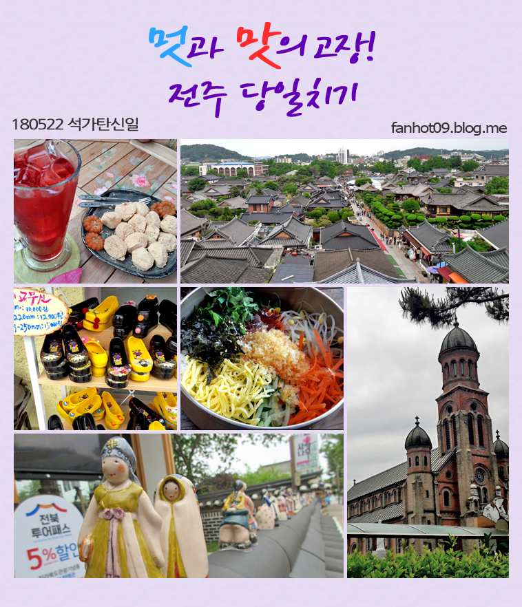 골목골목 다양한 볼거리도 많았고 인적을 피해서 조용한 청연루, 전주향교 가서 사색도 즐기고 전주 한옥마을 풍경을 한눈에 내려다 볼 수 있는 오목대와 전망(카페)이라는 곳도 항상 가는 곳이지요! 벚꽃이 지고 철쭉꽃마저 지고, 이제는 푸르름이 짙어져 봄의 신록이 가득했던 전주! 이제는 장미의 계절, 장미꽃도 여기저기 볼 수 있었습니다. 노천 전통찻집에서 다과도 즐기고, 고즈넉한 담장 너머 옛 정취 가득한 길을 걷고 있자니 시간 가는 줄 모르겠더라구요. 서울)북촌한옥마을, 우리 경상도내 안동, 경주 한옥마을이랑은 뭔가 느낌이 또 달랐던 전주 한옥마을 투어! 더운 여름철 여유로운 힐링을 즐기려는 이들에게 더욱 추천할 만한 곳 맛과 멋의 고장! 전주로 떠나보세요~~ 꽤 많은 인원이었는데 잘 인솔해주신 이지수 가이드님과 기사님도 모두모두 수고하셨고 항상 즐거운 여행에 정말 감사드립니다!^^ 다음에 또 여행 해볼게요~! 더 많은 사진은 제 블로그에도 있으니 종종 놀러와주세요!! (사진에 주소있음) |