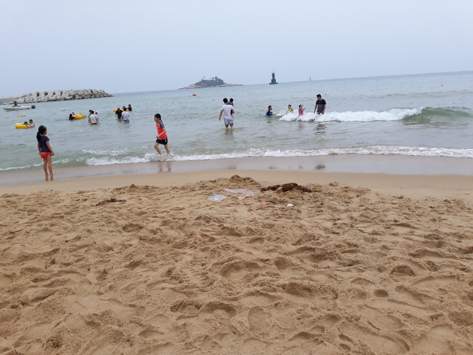 역시 비오는날은 해수욕장 물놀이인가요!?