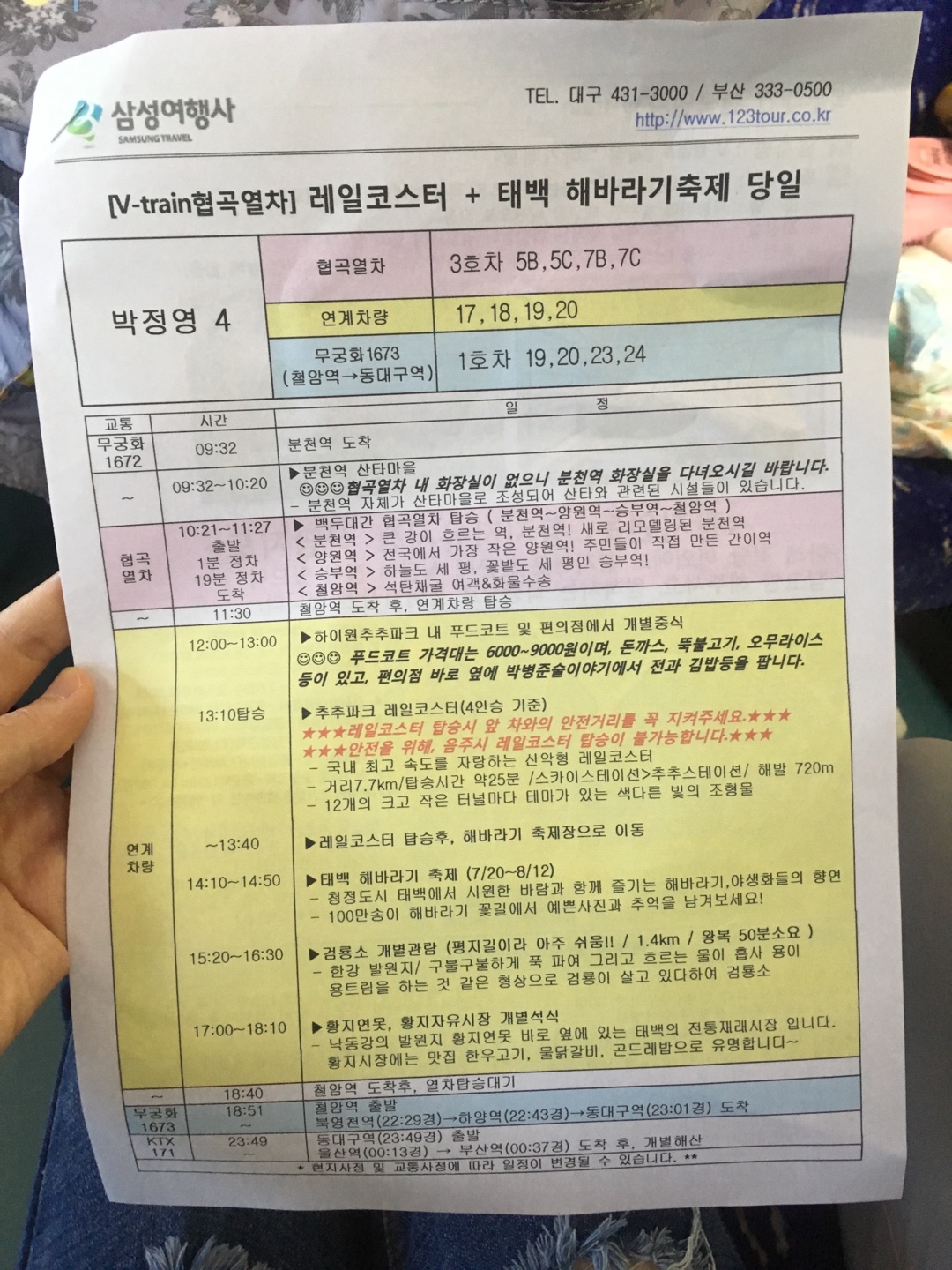 무궁화호를 타고 분천역으로 칙칙폭폭 출발.