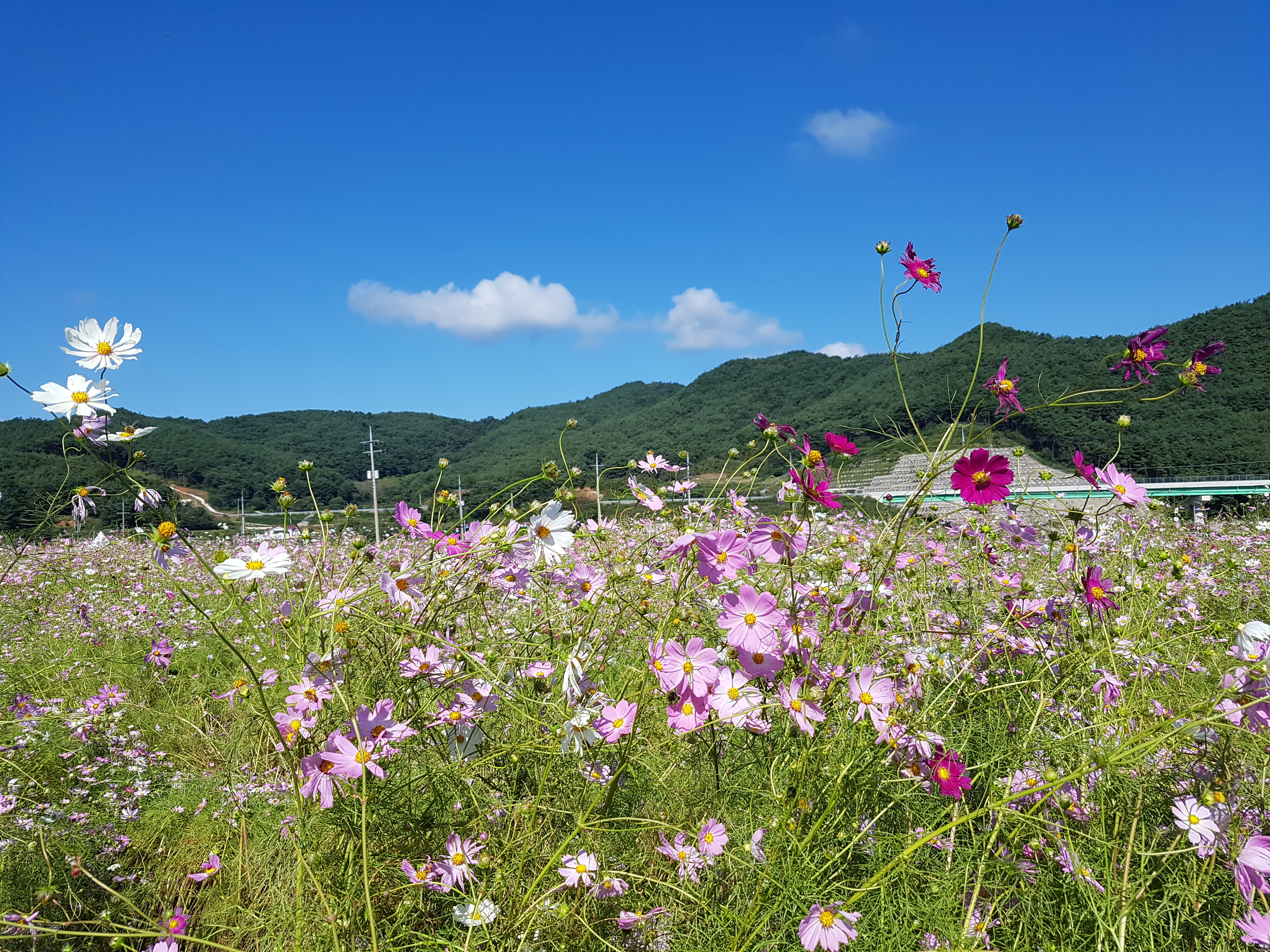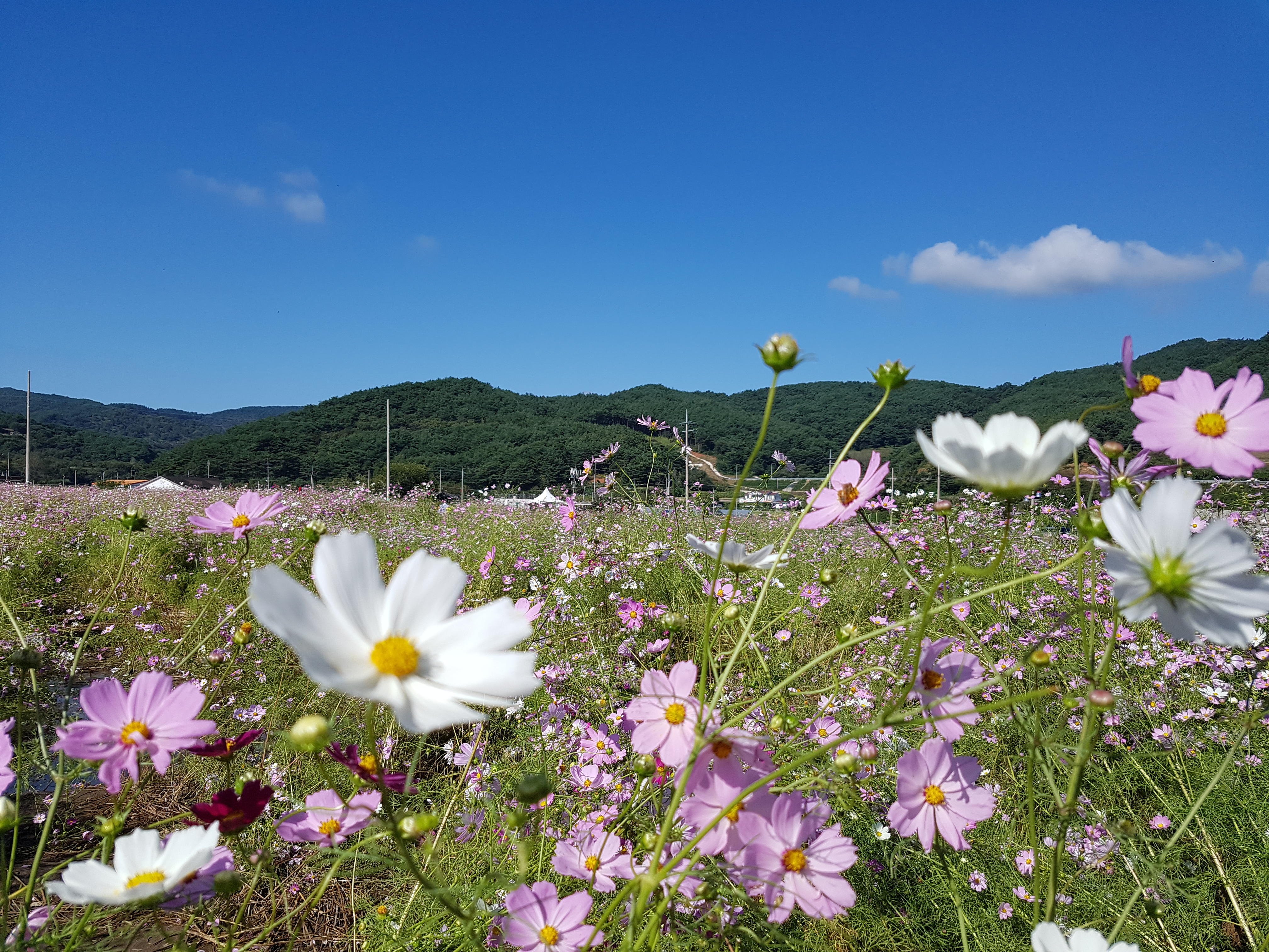 그렇지만 비록 강한 바람에 누웠을지라도 여전히 환하게 피어있는 코스모스들의 모습은 장관이였다고 할 수 있겠다.