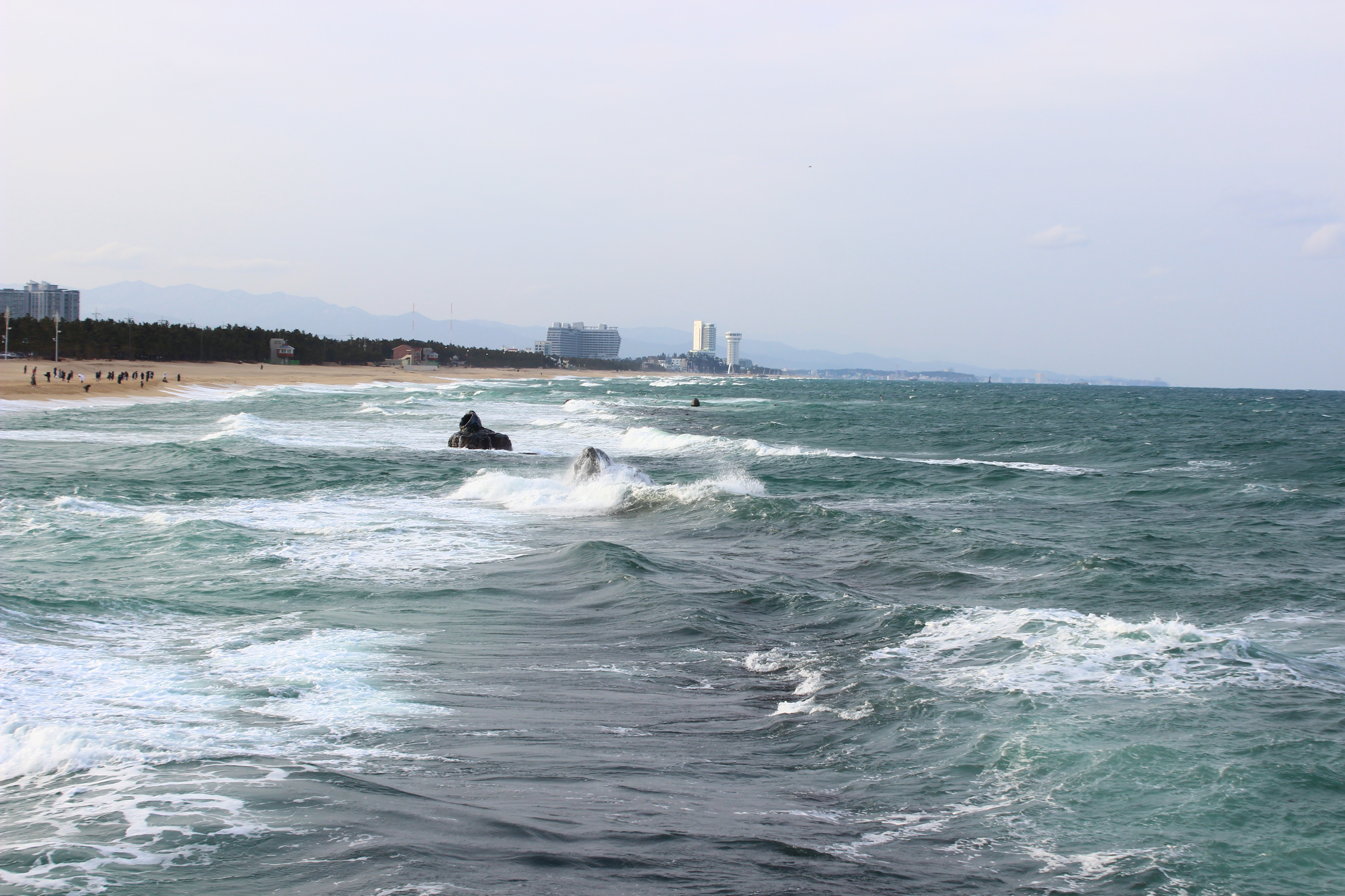안목 커피거리에 가서 추웠지만 강릉의 바다를 볼 수 있었어요. 겨울 바다라서 사람이 많이 없을 줄 알았는데