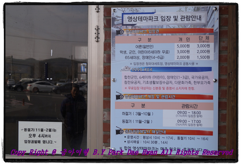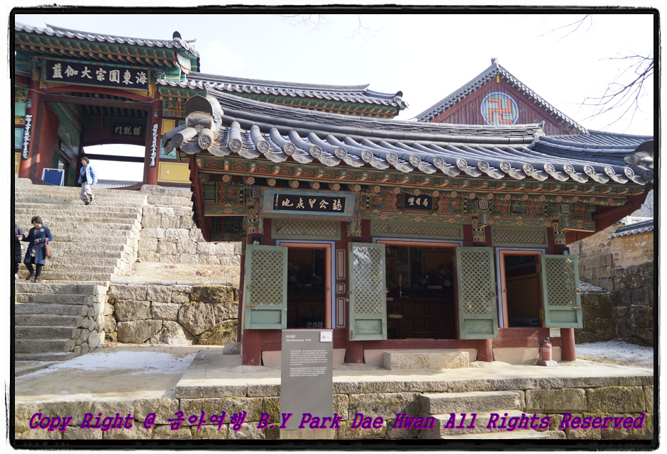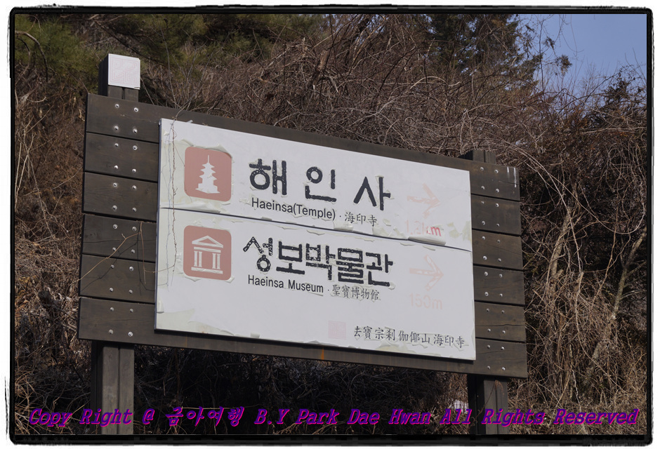 지난주 토요일인 02월16일에 저는 삼성여행사를 통해 합천 당일치기 여행(해인사 + 합천영상테마파크 + 청와대세트장)을 다녀왔습니다. 평소 혼자서 여행즐기길 좋아하던 저는 대한민국 방방곡곡을 많이 돌아다녀봤다고 생각했는데 아직 한번도 가보지 못한 곳이 있었습니다. 그곳이 바로 합천이었으며 마침 삼성여행사에서 입장료 8,000원 포함한 금액인 19,900원에 알차게 여행다녀올 수 있다는 정보를 알고 바로 예약을 하였습니다. 토요일 당일 아침 저는 법원 탑승장에서 탑승을 하였습니다. 법원 앞 탑승장에 대기중이던 드림관광 45인승 버스 7984호 입니다. 버스 탑승 후 담아본 내부 입니다. 이 날 가이드님께서는 여승인 가이드님께서 수고해주셨으며 일정표를 받았습니다. 대구를 출발하여 합천 해인사, 영상테마파크, 청와대세트장까지 짧고 굵게 떠나는 여행코스였습니다! 저렴한 가격에 알차게 여행을 떠나는 것이 요즘말로 소확행(소소하지만 확실한 행복)이 아닐까? 라는 생각을 해봅니다..^^ 버스는 법원 앞, 현대백화점, 성서홈플러스 탑승장을 지나 법원 탑승장 출발한지 약 45분만에 논공휴게소에서 7분정도 휴식을 취하였습니다. 삼성여행사 뺏지 입니다. 이 뺏지의 역할은 이 날 해인사 입장료와 합천영상테마파크 입장료를 대신하는 아주 중요한 뺏지 입니다 ㅎㅎ 버스는 약 1시간37분만에 해인사에 도착하였으며 13시까지 다시 버스에 탑승하십시오라는 가이드의 이야기를 들었습니다. 해인사 주차장에서 해인사까지 약 1.6km를 걸었습니다. 해인사 입구에 도착하여 담아본 "세계문화유산 해인사 고려대장경 판전" 이라는 비석을 담아보았습니다. 해인사를 걸으면서 담아본 사진입니다. "국사단" 입니다. 국사단은 국사대신을 모신 단으로써 국사대신은 도량이 위치한 산국을 관장하는 산신과 토지가람신을 가리킵니다. 대적광전과 석등, 정중삼층석탑 입니다..^^ "석등" 입니다. 석등은 부처님의 광명을 상징하는 동시에 사찰 경내를 밝히기 위해 만든 등 시설 입니다. "정충삼층석탑" 입니다. 탑은 본래 부처님의 사리를봉안하던 곳이었으나 이후에 사리, 경전, 불상 등을 모시고 예경하는 곳으로 발전하였습니다. 정중삼층석탑은 불상을 모신 탑 입니다. 9세기 통일신라 석탑의 전형으로 해인사 창건 당시 세운 것으로 추정됩니다..^^ 해인사 내 있는 팔만대장경판 입니다. 팔만대장경판은 부처님께서 진리의 세계에 대해 차별없이 말씀하신 법과 그에 대한 주석서를 포함한 일체의 총서(이를 경, 율, 론 3장이라 한다)를 81,350판에 달하는 목판에 양각으로 새겨놓은 것입니다. 총 1,514경전, 52,389,400글자, 6,791 책으로 되어 있습니다! 국보 제 32호 "반야바라밀다심경" 입니다. 팔만대장경판 가운데 가장 짧게 260자로 서술된 1판 단권의 경판 입니다. "학사대" 입니다..^^ 학사대는 신라 말기의 문장가이자 학자였던 최치원이 만년에 가야산에 은거하여 시서에 몰입하던 곳 입니다. 당시 거꾸로 꽂아 두었다고 전해지는 전나무 지팡이가 지금까지 살아잇으며 현재도 증명이라도 하듯 가지가 아래로 쳐져 거꾸로 자라는 것처럼 보이기도 합니다! "대비로전" 입니다. 비로자나불을 모신 법당을 비로전이라고 합니다. 해인사를 구경하고 나와 걸으면서 담아본 물줄기 입니다! 해인사에서 생각외로 볼게많았으며 주차장에서 해인사, 해인사에서 주차장까지 다시 걷는시간이 생각외로 길어져서 점심을 먹을시간이 없었습니다. 점심을 먹지 못하고 다시 버스에 탑승하였습니다! 버스는 5분의 손님이 늦게오시는 바람에 13시09분에 출발하였습니다. 해인사 출발한지 약 1시간만인 14시09분에 합천영상테마파크에 도착하였습니다. 합천영상테마파크는 영화 말모이, 각시탈, 빛과그림자, 도둑들, 욕망의불꽃, 무한도전, 제중원, 전우치, 에덴의동쪽, 태극기휘날리며 등을 촬영한 곳이기도 합니다! 합천영상테마파크는 동절기(11월~02월) 기준으로 오후4시까지 입장권을 발매하며 17시까지 관람할 수 있습니다..^^ 합천영상테마파크 입장하니 전차가 먼저 반겨주었습니다. 동화백화점 입니다.  합천영상테마파크 둘러보면서 담아본 사진입니다. 사진 속 장소는 옛날 서울역 모습 입니다! 1970년대 서울종로거리로 추억여행을 해보기로 합니다. 철교와 골목길이 먼저 반겨주었습니다..^^ 자전거 여러대가 전시되어 있었습니다. 옛날 증기기관차의 전시공간을 사진으로 담아보았습니다. 증기기관차 내부 입니다! 대흥극장 입니다. 일제시대 소공동거리쪽에 옛날학교체험하는 곳이 있어서 한번 둘러보기로 합니다. 옛날 학교에 붙어있던 추억의 포스터들 입니다. 옛날 학교다닐때 교실 입니다. 저 난로 위에 도시락을 데우기도 하고 맨 밑에 도시락은 다 타버리기도 했었던 추억들이 있습니다. 수도경찰청에 교도소체험하는 곳도 한번 들려보았습니다..^^ "돈암장" 입니다. 광복과 함께 미국에서 귀국한 초대 대통령 이승만이 1945년 10월부터 약 2년간 기거한 사저입니다.   합천영상테마파크 둘러보면서 사진을 계속 담아보았습니다. 영화 택시운전사 촬영지가 바로 영상테마파크 입니다..^^ 버스터미널 입니다. 남부버스배차장이 지금으로