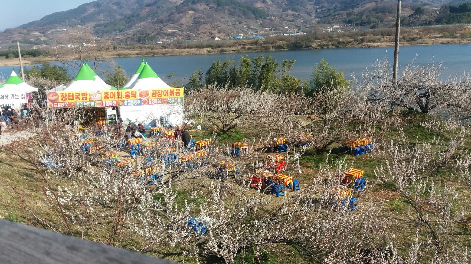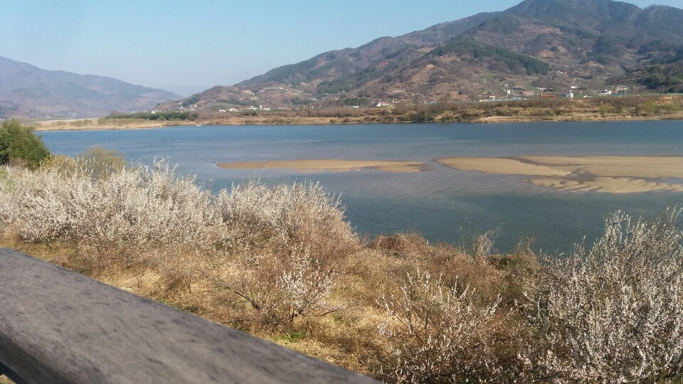 길게 늘어진 줄을 빗겨서 셔틀버스 타지 않고 걸어서 가다보니 섬진강이 눈에 들어왔다. 꽂보다 강물~~~