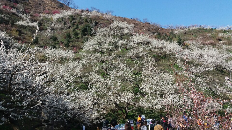 버스 탑승 시간에 맞추느라 계속 매화산을 누비고 싶은 맘을 뒤로 하고 내려왔다. 내려오는 길에  매화꽃잎으로 장식된 큰바위 앞에서 추