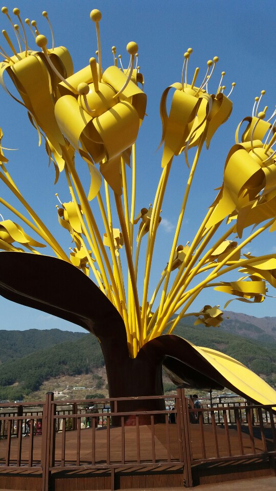 그다음 도착한 곳은 사랑공원이었다. 올라가는 길에 사랑을 담은 메모도 줄에 걸어 놓고 산수유꽃조형물에서 또 찰칵~
