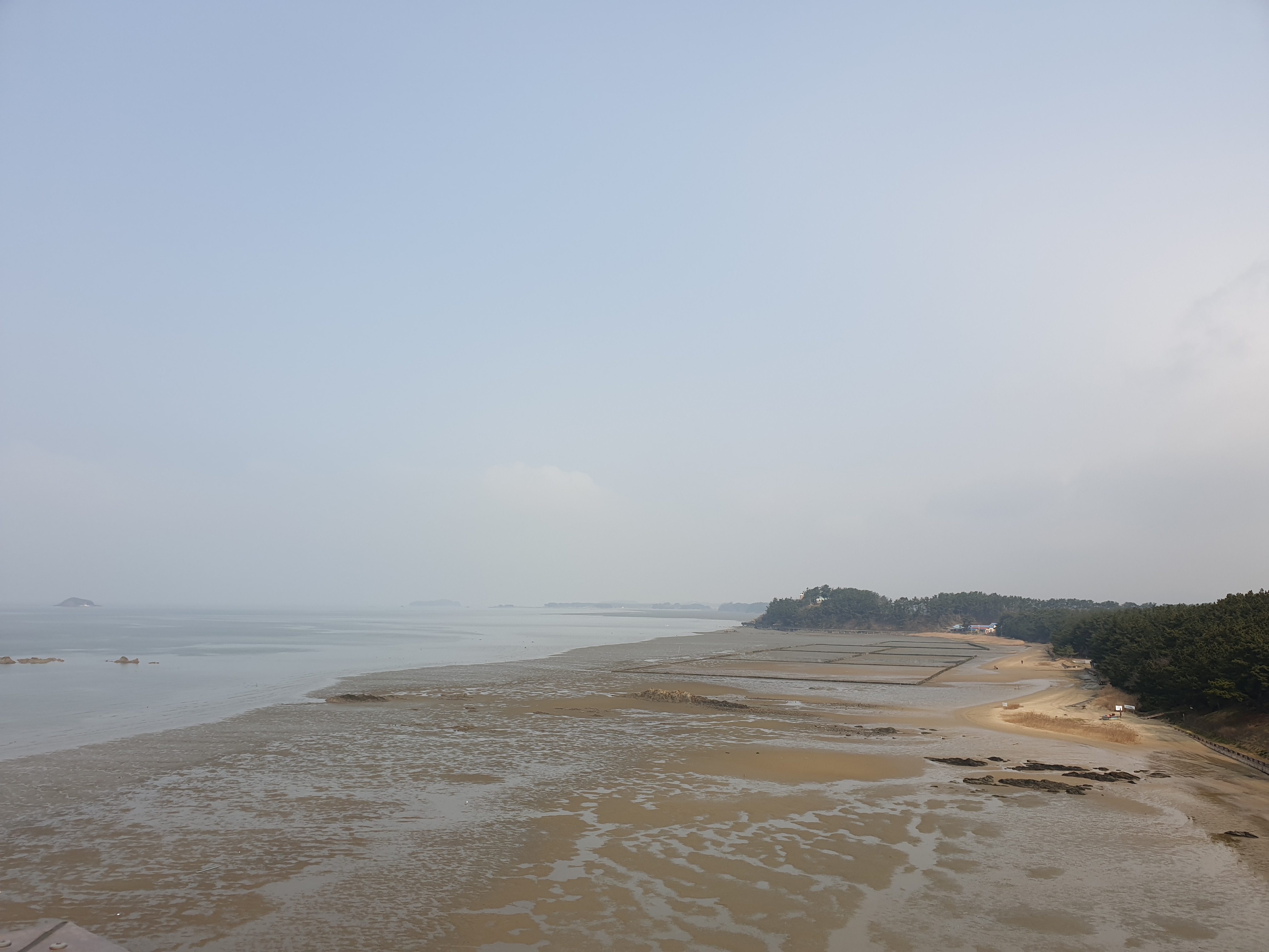 첫 코스는 장항 스카이워크였는데 오랜만에 키 큰 소나무들이 줄지은 길을 걸으니 참 좋았고 또 높은 곳에서 바다를 내려다 보니 일상의 스트레스들이 훅~ 날아가는 것 같았습니다. 산이나 전망대 같은 곳에서 바다를 내려다 본적은 많지만 이렇게 바다 위에 있는 그것도 발 아래가 내려다 보이는 높은 구조물 위에서 바다를 내려다 본 적은 처음이라 약간 무섭기도 했지만요ㅎㅎ