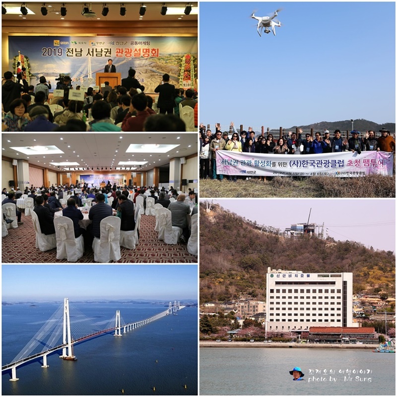 2019년 4월 5일 전라남도 목포시, 무안군, 신안군 공동마케팅행사로 신안비치호텔에서 전라남도 서 남권 관광설명회가 있었다, 사단법인 신안군관광협의회에서 주관을 하면서 전국의 관광업을 하시는 대표 분들과 파워 블로그 및 사진작가를 비롯하여 약 300명이 참석한 가운데 성황리에 행사가 이루어지기도 하였다. 이번 행사는 특히 1004대교를 개통하면서 기존에 섬을 오갈 때는 주로 뱃길로 여행을 하는 불편함이 있었지만 1004대교가 개통됨으로서 섬 지역을 편안하게 차량을 이용하여 여행을 할 수가 있다. 그래서 이번 행사에는 사단법인 한국관광클럽 대표자 여러분들이 많은 참석을 하셔서 고객 여러분들에게 보다 질 좋은 여행상품으로 보답하고자 사전에 신안군청 관광과 직원(PD)의 안내를 받으며, 신안군의 관광지를 둘러보면서 답사를 하기도 하였다. 신안군은 섬이 1.004개의 섬이 있어서 천사라고 부르기도 하지만 무공해지역으로서 힐링을 하기에도 너무나 좋은 관광지이기도 하다. 그래서 대구 삼성여행사에서는 앞으로 추후 고객 여러분들에게 아래의 사진으로 보시는 바와 같이 여행상품을 개발하여 추진을 하고자 하오니 많은 기대를 하셔도 후회를 하지 않을 것입니다.