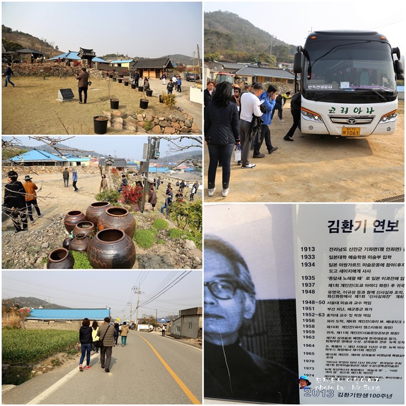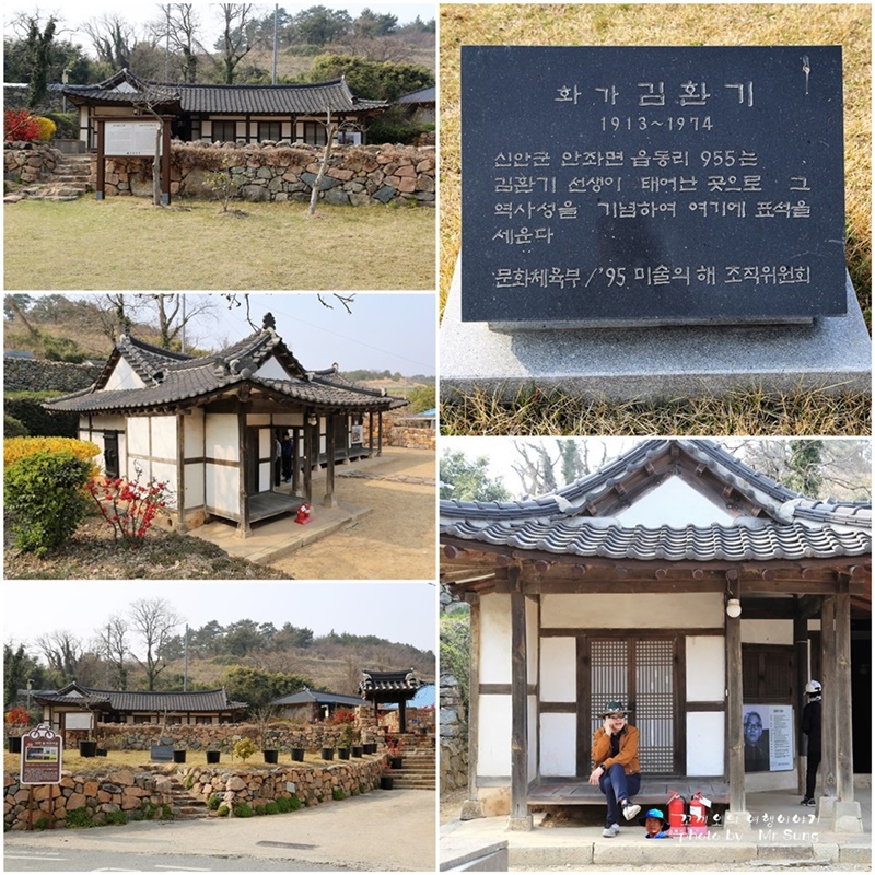 아래의 사진은 김환기 생가(고택) 서양화가 1세대 김환기 생가 (안좌면)신안이 낳은 한국의 피카소 김환기지금으로부터 100여 년 전, 전라남도 신안군 안좌도에서 한 아이가 태어났다. '빨랫줄에 널린 형형색색의 천들이 바람에춤을 추며 푸른 하늘에 그림 그리는' 태몽이 그의 운명을 미리 알려주었다. 김환기는 안좌면 읍동리에 자리 잡은 고즈넉한 이 가옥에서 태어났고, 유년시절을 보냈다. 생가는 ㄱ자의 목조 기와집으로, 곳간과 건너 방, 대청마루, 안방, '정지' 라는 방언으로 불리는 부엌으로 이루어졌다. 꼿꼿이 서 있는 안채는 1920년대 백두산에서 공수한 목재로 지은 것이라고 전한다. 김환기 생가는 우리나라 근현 대 미술사에서, 특히 추상미술에서 선구자적 역할을 한 수화의 혼이 담긴 곳으로, 역사 문화적 가치가 높다. 또한 20세기 초 한옥건물의 생활상을 엿볼 수 있는 실존자료라는 점에서 또 다른 가치를 찾을 수 있다. 1992년 지방기념물 제148호로 지정되었으며 2007년 국가 중요민속자료 제251호 지정되기도 했다. 이곳에는 김환기가 직접 작품 활동을 했던 화실이 재현되어 눈길을 끈다.