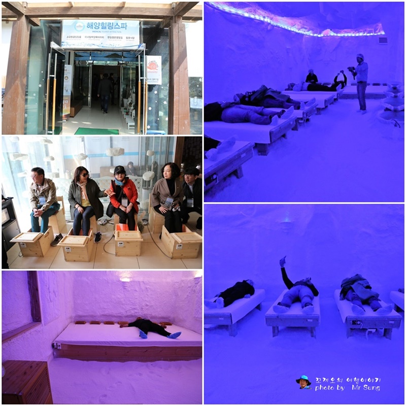 위에 사진으로 보면 소금동굴에서 체험을 해보기도 한다.