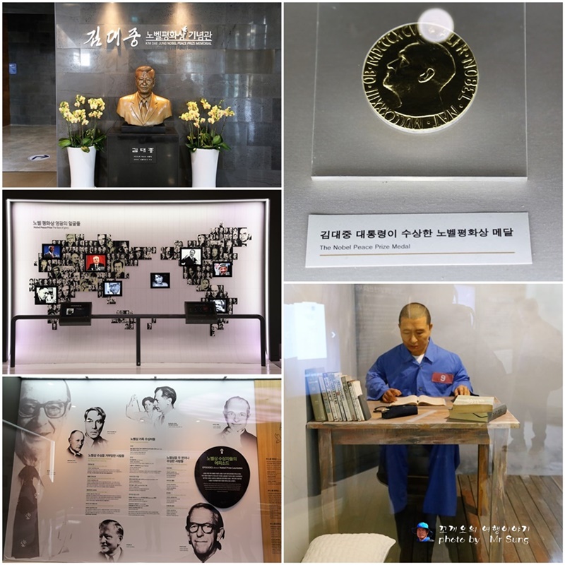 아래의 사진은 목포시에 있는 김대중 대통령 노벨평화상 기념관 김대중 대통령은 대한민국의 제15대 대통령이었으며 2000년에는 한반도와 아시아의 민주주의와 인권신장, 햇볕정책을 통한 남북한의 화해?협력관계 발전 그리고 세계 평화를 위해 헌신한 공로로 노벨평화상을 수상하였다.김대중 대통령의 생애는 민주주의?인권?평화를 위해 헌신하는 삶이었다. 5번의 죽을 고비를 넘기면서도 불의에 항거하며 한국 현대사 격동기의 중심에서 '행동하는 양심'의 삶을 실천했다. 또한 자신을 탄압하고 모함했던 이들과 화해하고 용서 함으로서 진정으로 용기 있는 자의 면모를 보였다.
