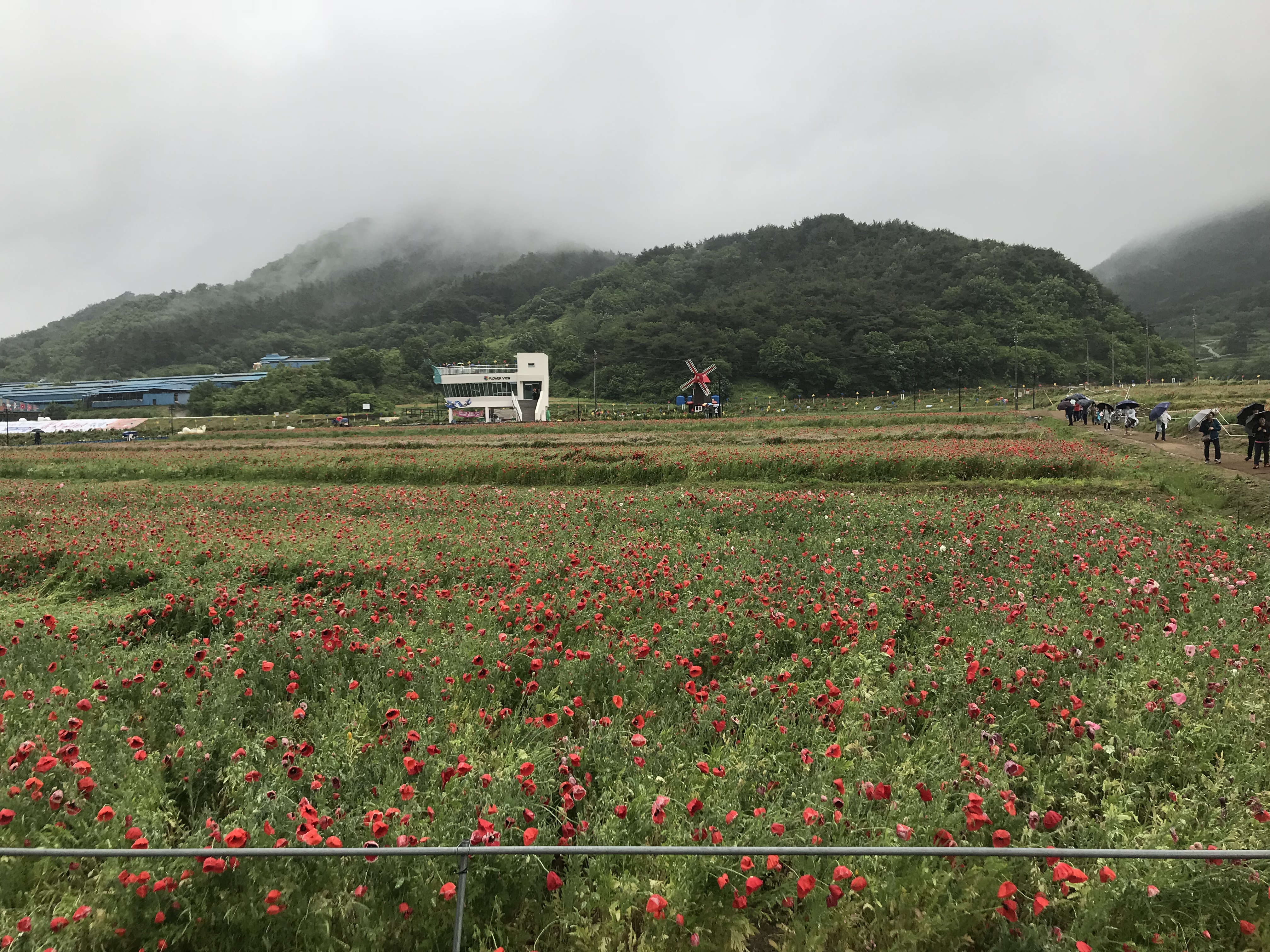 전국적으로 비가오는 소식으로 하루를 시작했습니다. 북천양귀비축제장 도착해서 비가 왔지만 나름 꽃구경하기 괜찮았습니다. 점심식사 시간쯔음