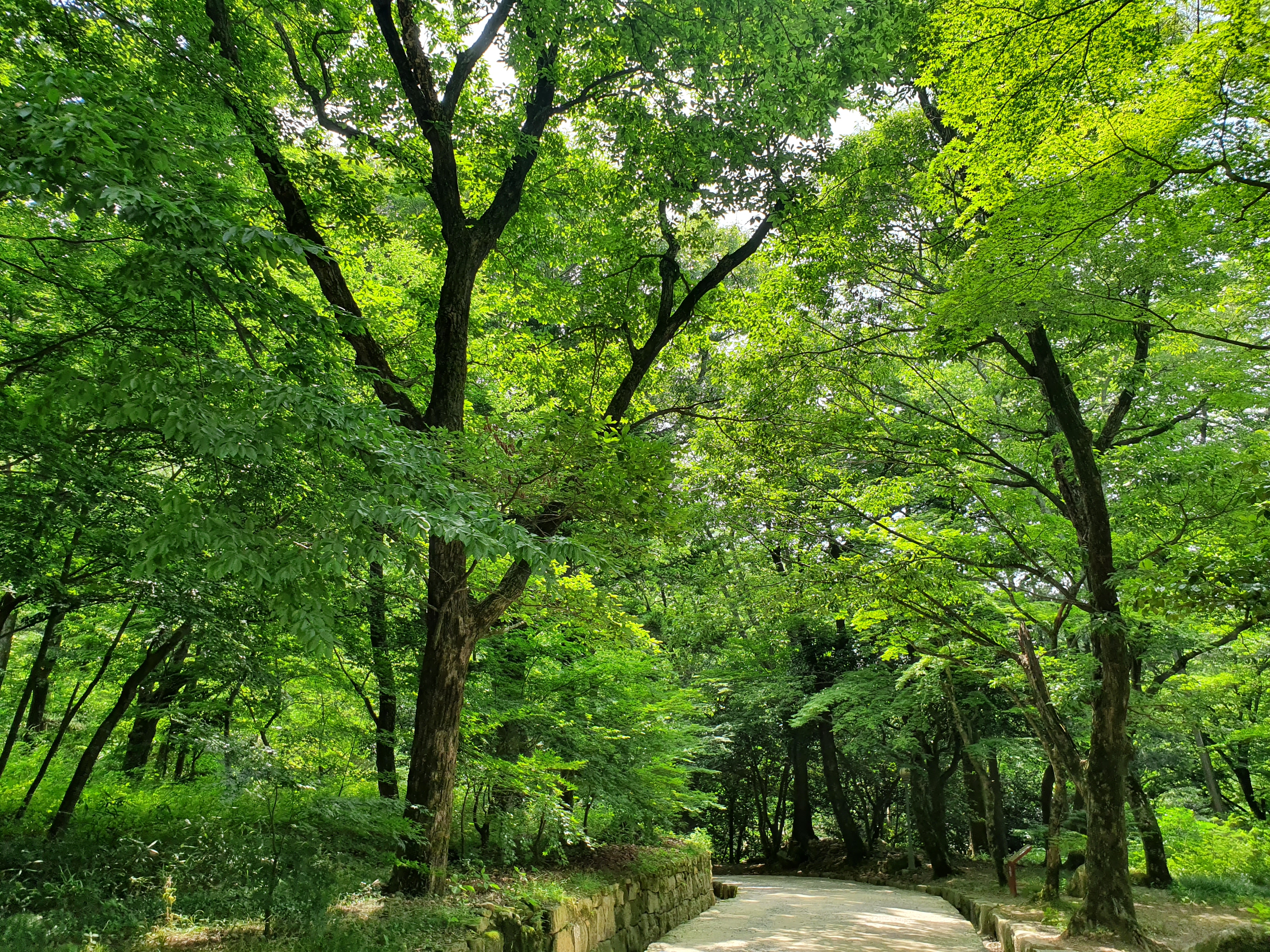 오래된 나무가 만들어주는 그늘과 푸른 나뭇잎이 가득한 대흥사로 이동하는 길은 말이 필요없을 정도로 기분까지 좋아지는 코스였고, 맑은 하늘덕에 누워있는 부처의 형상을 한 산능선도 운 좋게 볼 수 있었습니다.