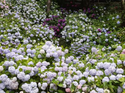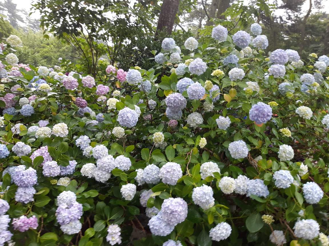 수국꽃이 얼마나 탐스럽게 피어있는지, 꽃색상도 가지가지이고, 얼굴만한 크기의 수국꽃을 보고는 비맞고  고생하면서