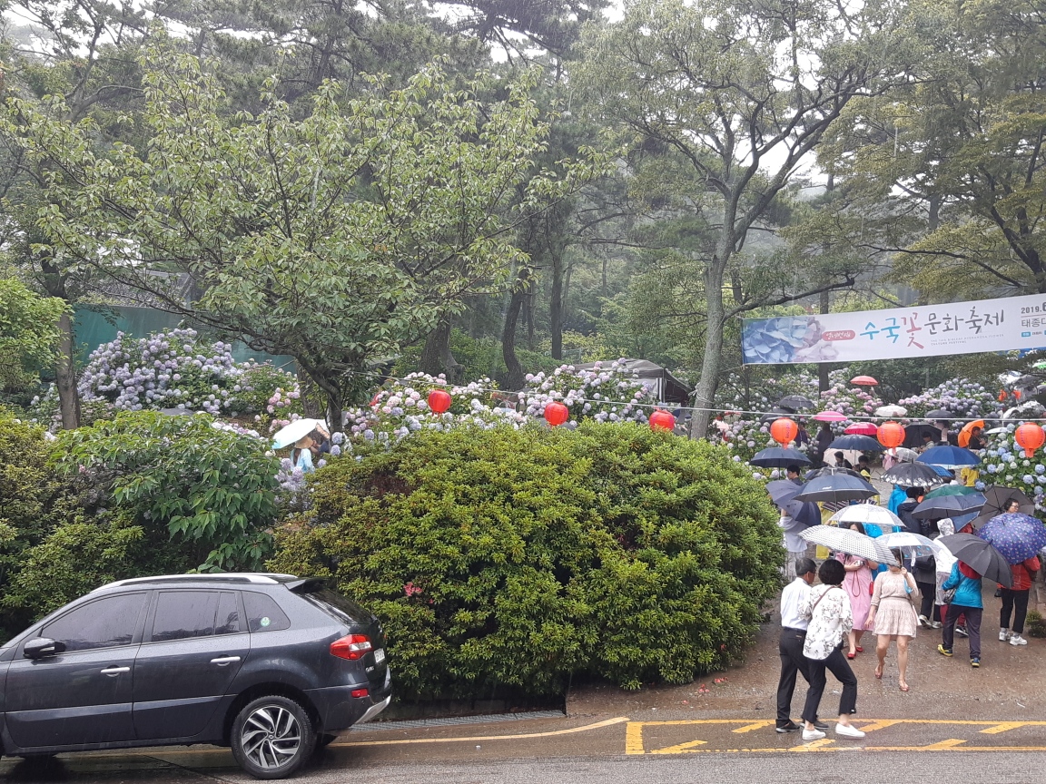 비오는날 다부비열차운행하지 않아서 20분가량 걸어서 도착한 태종사의 수국꽃을 보고는 감탄사가 연발하네요