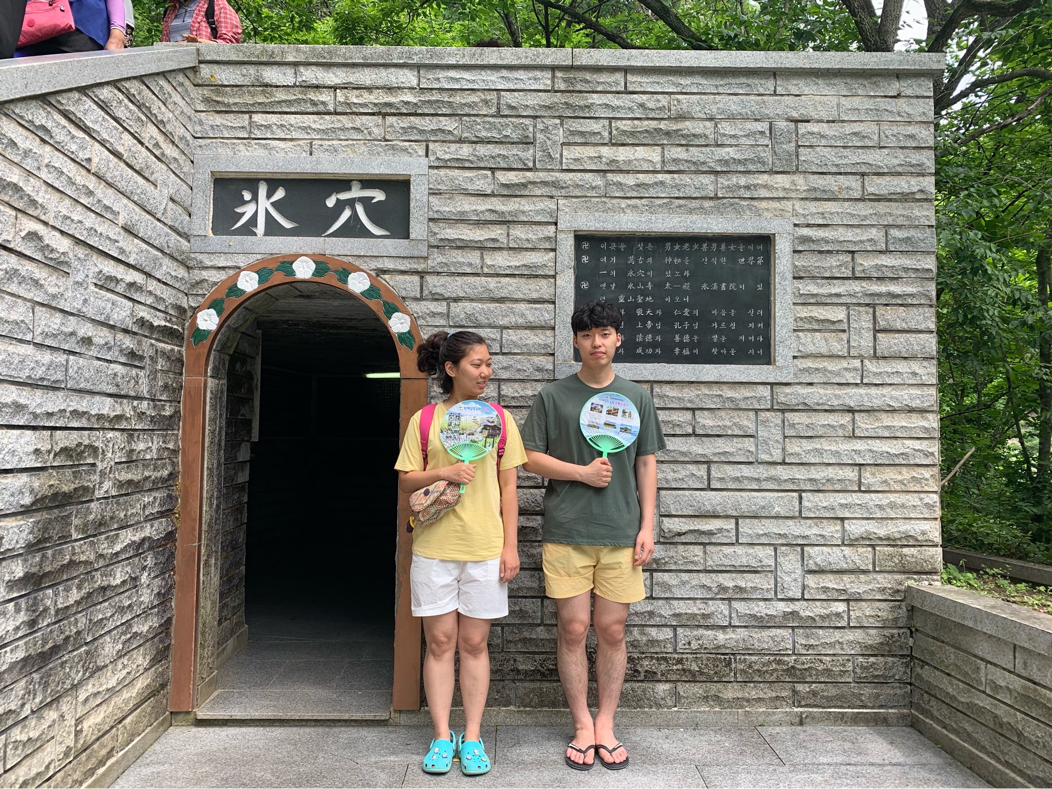 맛있는 간식을 먹으며 하하호호 이야기 나누다보니 어느새 의성에 도착했습니다. 유쾌한 해설사님이 우리를 반겨주셨는데, 풍혈과 빙혈에 관해 설명도 잘해주셔서 참 좋았습니다. 그리고 풍혈은 가까이 가니까 정말 찬바람이 슝~~~ 불어나와서 춥더라구요ㅎㅎ 엄청 신기했습니다. 사진에서도 추위가 느껴지시나 모르겠네요ㅋㅋ 가이드님이 찍어주신 멋진 커플샷도 함께 자랑합니다^ㅇ^