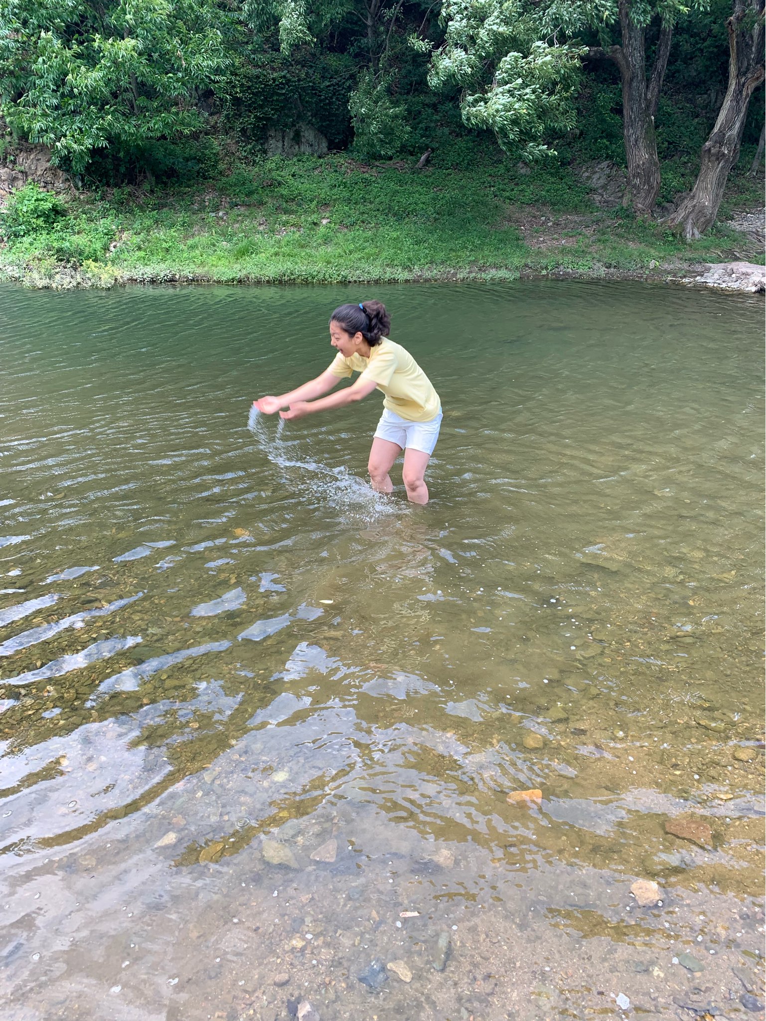 빙혈까지 다보고 5분 정도 걸어가니 발을 담그고 놀 수 있는 계곡이 나왔습니다~ 물이 안깊어서 함께 갔던 아이들도 물총으로 재밌게 놀더라구요! 저또한 물놀이를 좋아해서 여벌옷이 없는데도 열심히 놀았습니다ㅎㅎ 또 물이 얼마나 깨끗한지 올챙이랑 다슬기도 볼 수 있었습니다.