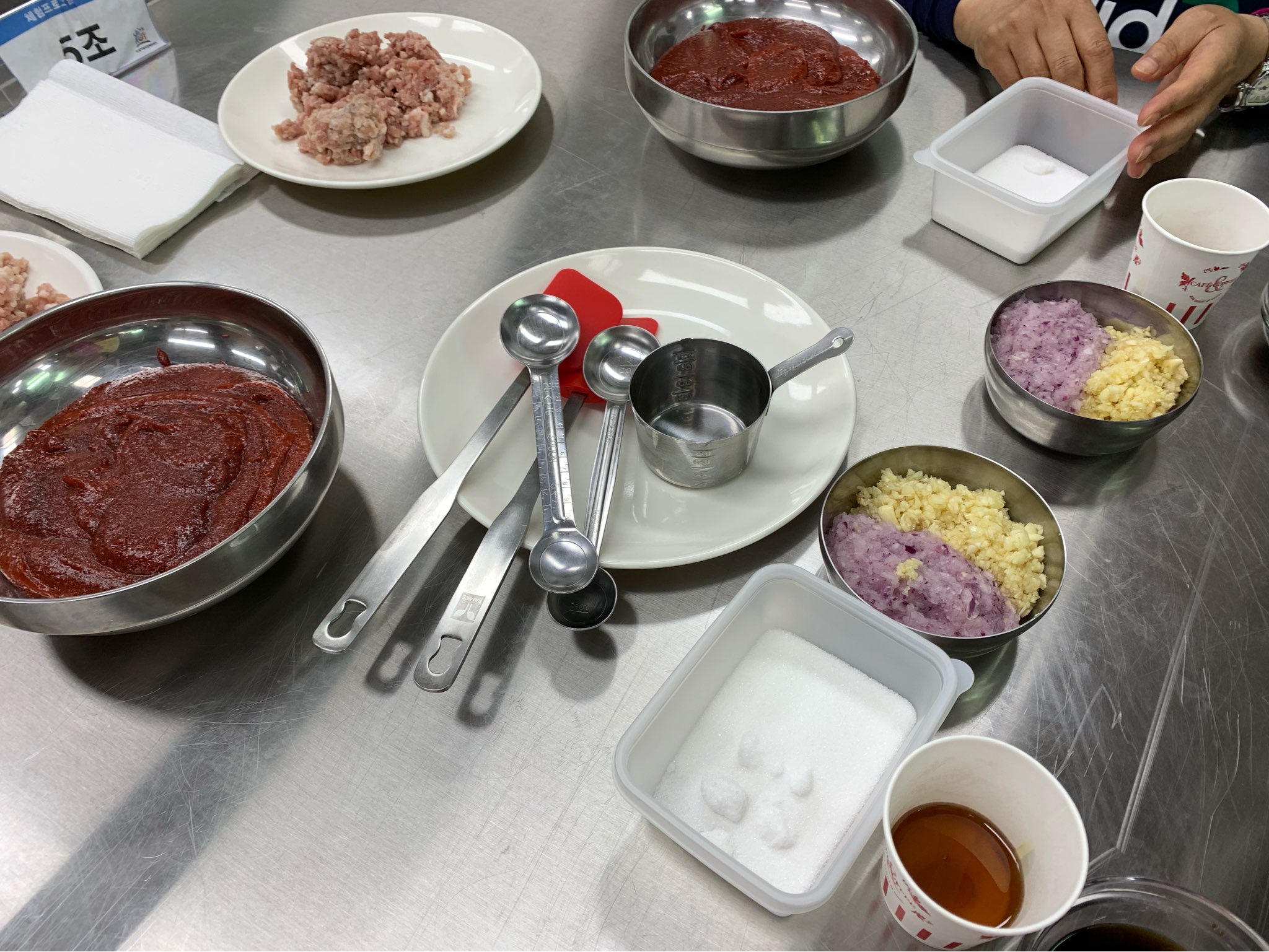 의성시장 다음 코스는 마늘고추장볶음 체험이였습니다! 깔끔한 홍보관에서 미리 계량과 손질해둔 재료들 덕분에 만들기도 쉬웠습니다ㅎㅎ 남자친구가 중불로 살살 저어줘야하는 고추장을 센불에 요리하다가 눈에 고추장이 들어가서 사진도 많이 못찍고 고생했지만 집에 와서 물김치에 밥비벼먹으니까 와.. 진짜 최고였습니다>_< 만드는 방법 찍어왔으니 이거 보시는 다른 분들도 한번 도전해보세요~
