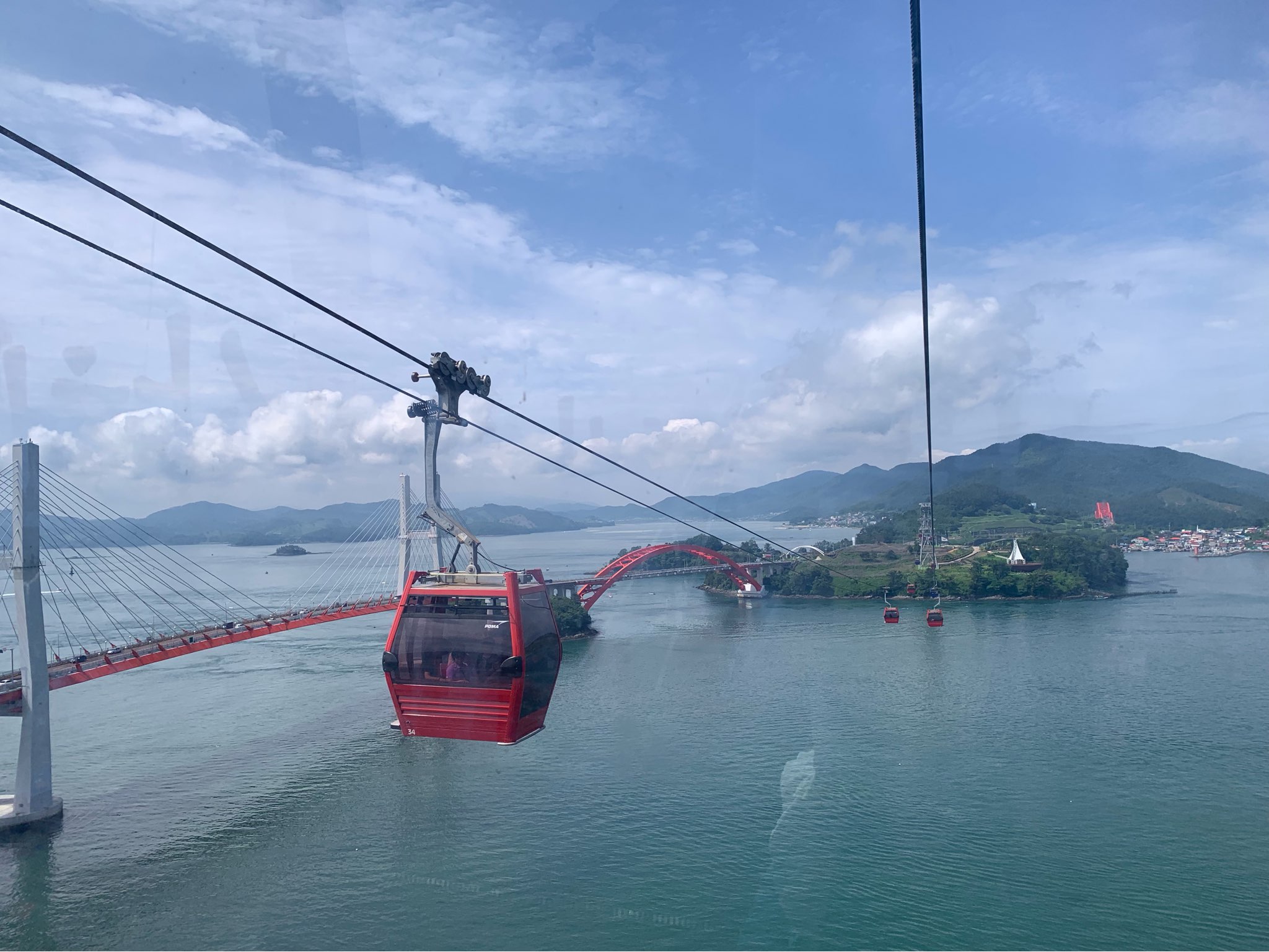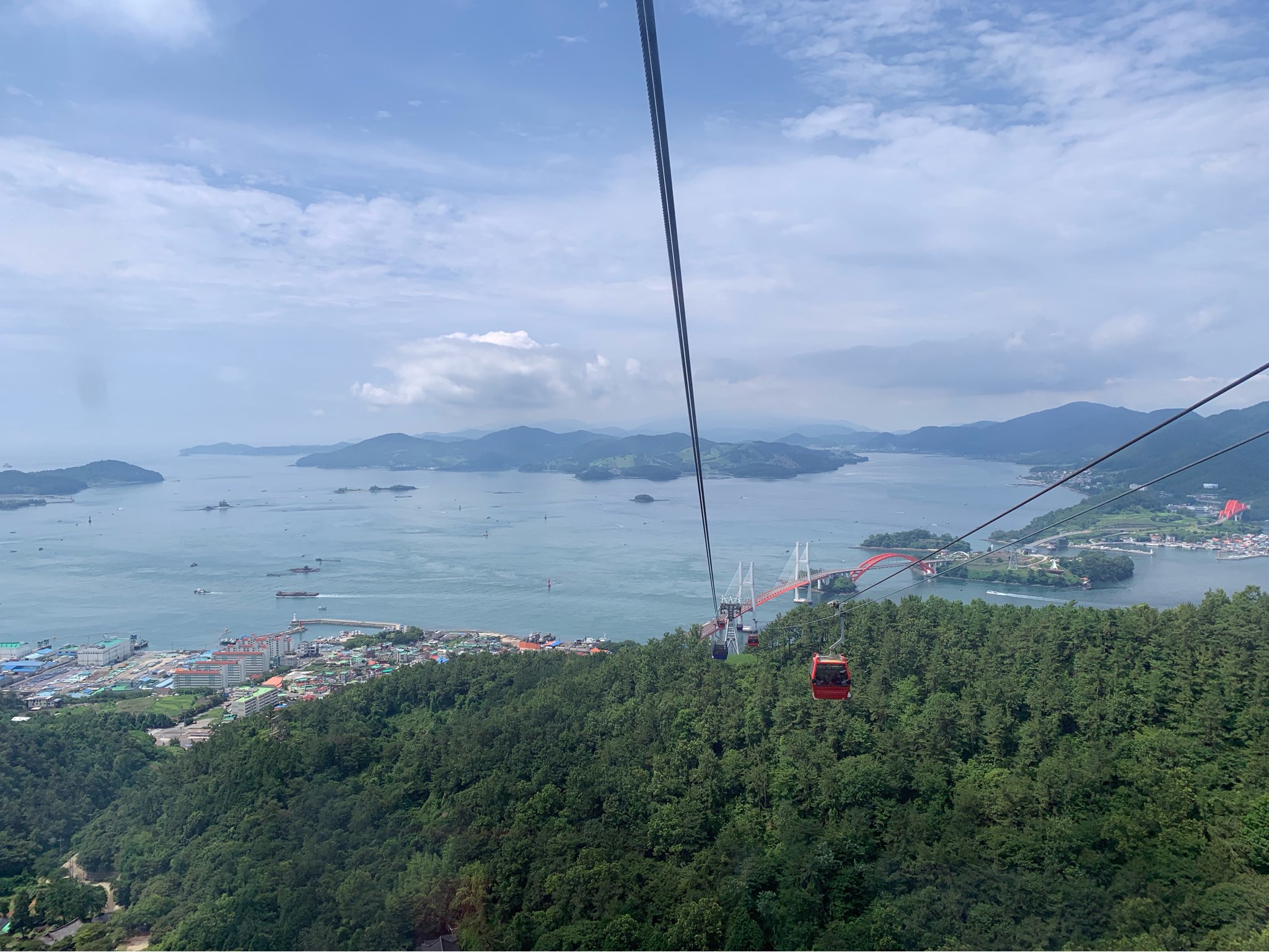 원래는 이용하는 사람이 많아서 오래 기다려야한다던데 오전에 일찍 가서 약 10분 정도 대기하고 바로 탈 수 있었습니다ㅎㅎ 게다가 사람이 별로 없어서 직원분이 아빠랑 저 2명만 탑승할 수 있도록 해주셔서 완전 럭키!!!!!!!!!!!! 여행 전에는 투명한 크리스탈 케이블카로 업그레이드해서 타볼까 고민했지만 직접 가보니 너무 무서워보여서 쫄보인 저는 일반 케이블카를 탔습니다! 하늘 위에서 바라보는 삼천포의 모습은 진짜 아름다웠습니다. 그리고 각산정류장에서 내려 숲속의 맑은 공기도 잔뜩 마셔서 건강해지는 기분이였습니다ㅎㅎ
