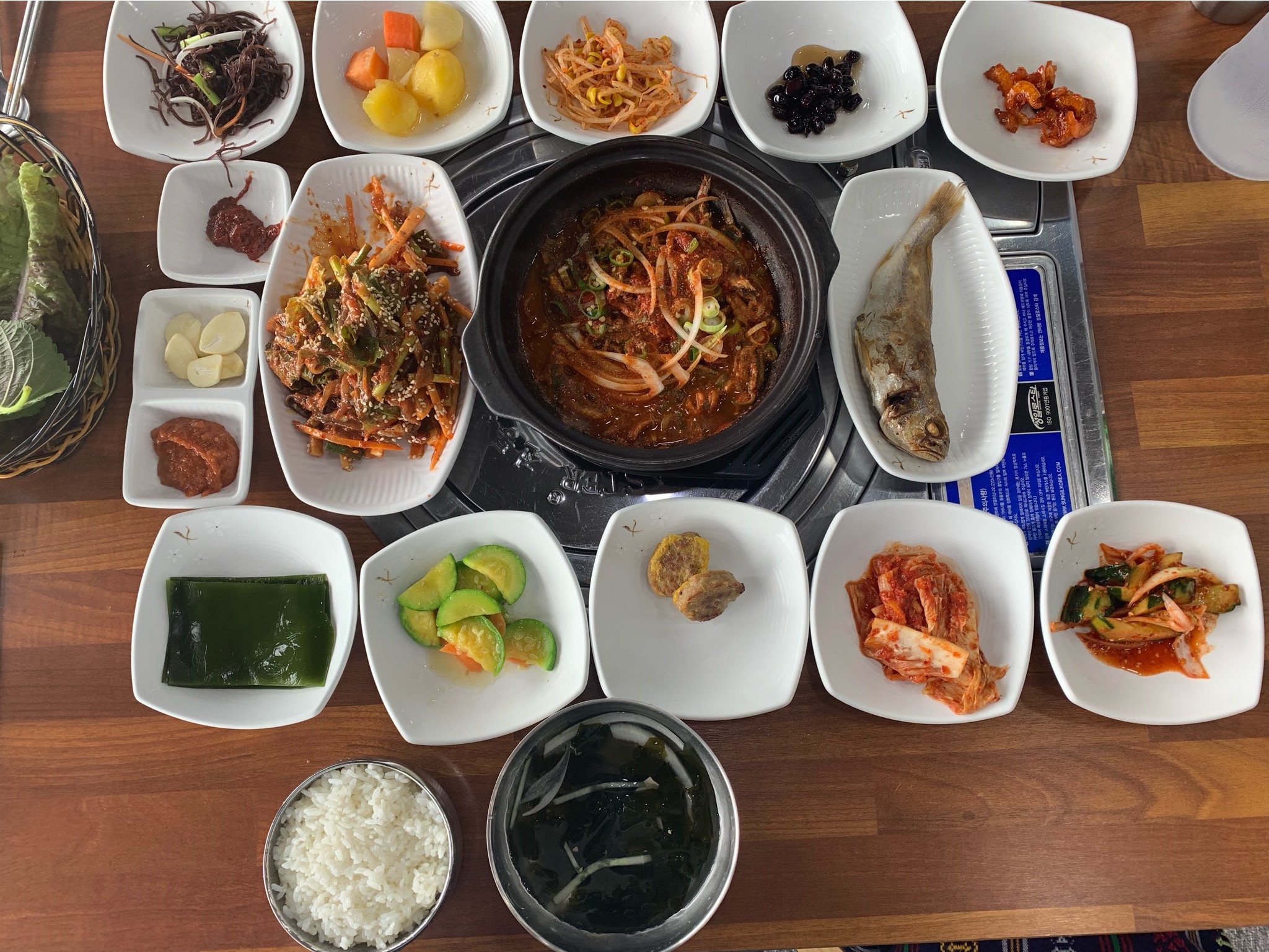 점심으로는 남해의 별미 멸치쌈밥과 회무침 세트를 먹었고 아빠랑 맥주 한잔하면서 먹으니 게눈 감추듯 다 먹었습니다!!