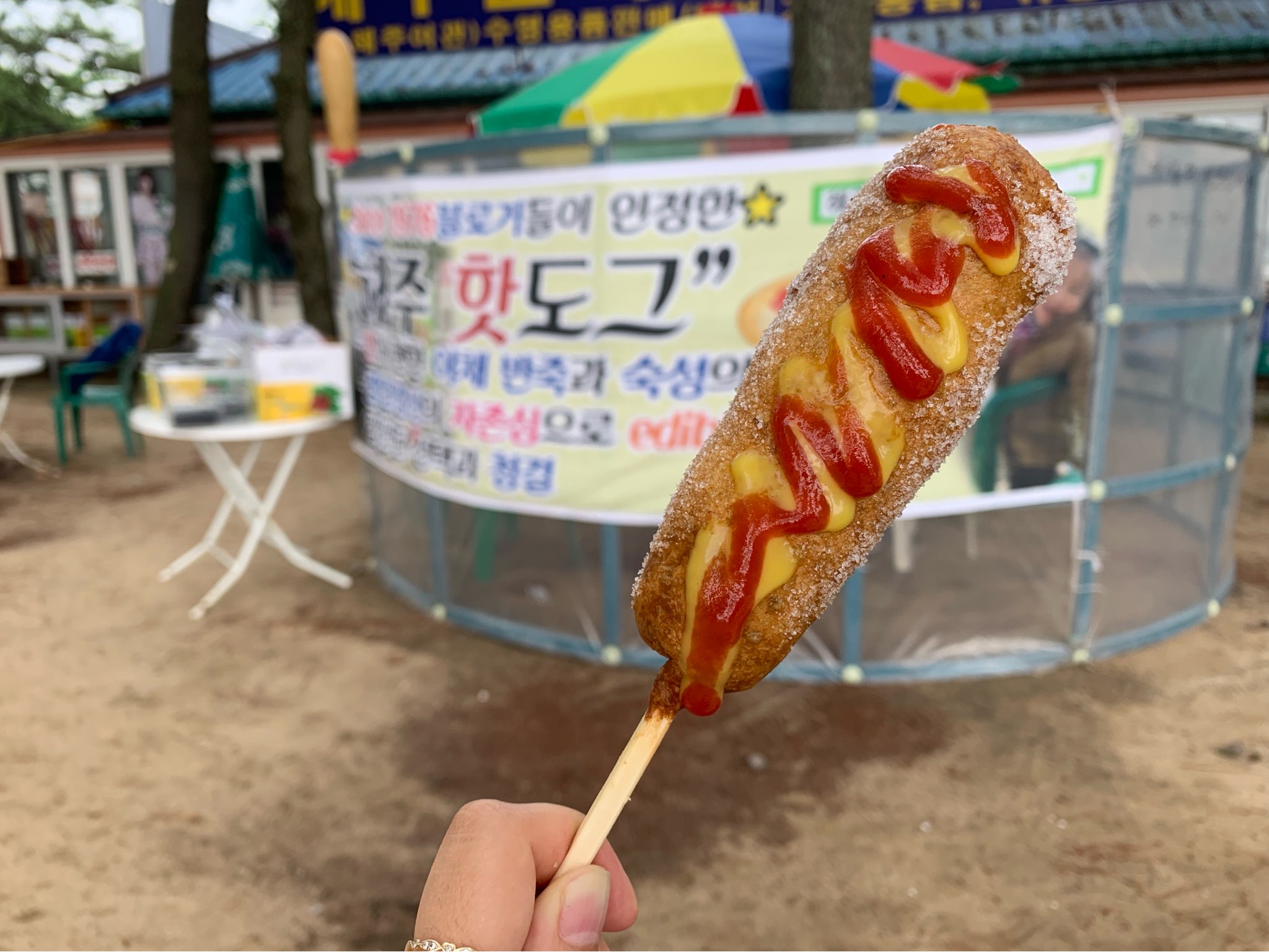 배를 채우고 상주은모래비치로 이동했습니다. 날씨가 흐렸지만 가족 단위로 놀러와서 벌써부터 해수욕을 즐기고 있더라구요ㅋㅋ 저도 뛰어들고싶었지만 여벌옷이 없어서 모래에 그림만 그리고 핫도그를 먹으면서 여유를 즐겼습니다~ 엄청 오래된 핫도그집이 있던데 야채 반죽이라더니 부드럽고 맛있어서 2개나 먹었습니다>ㅠ<