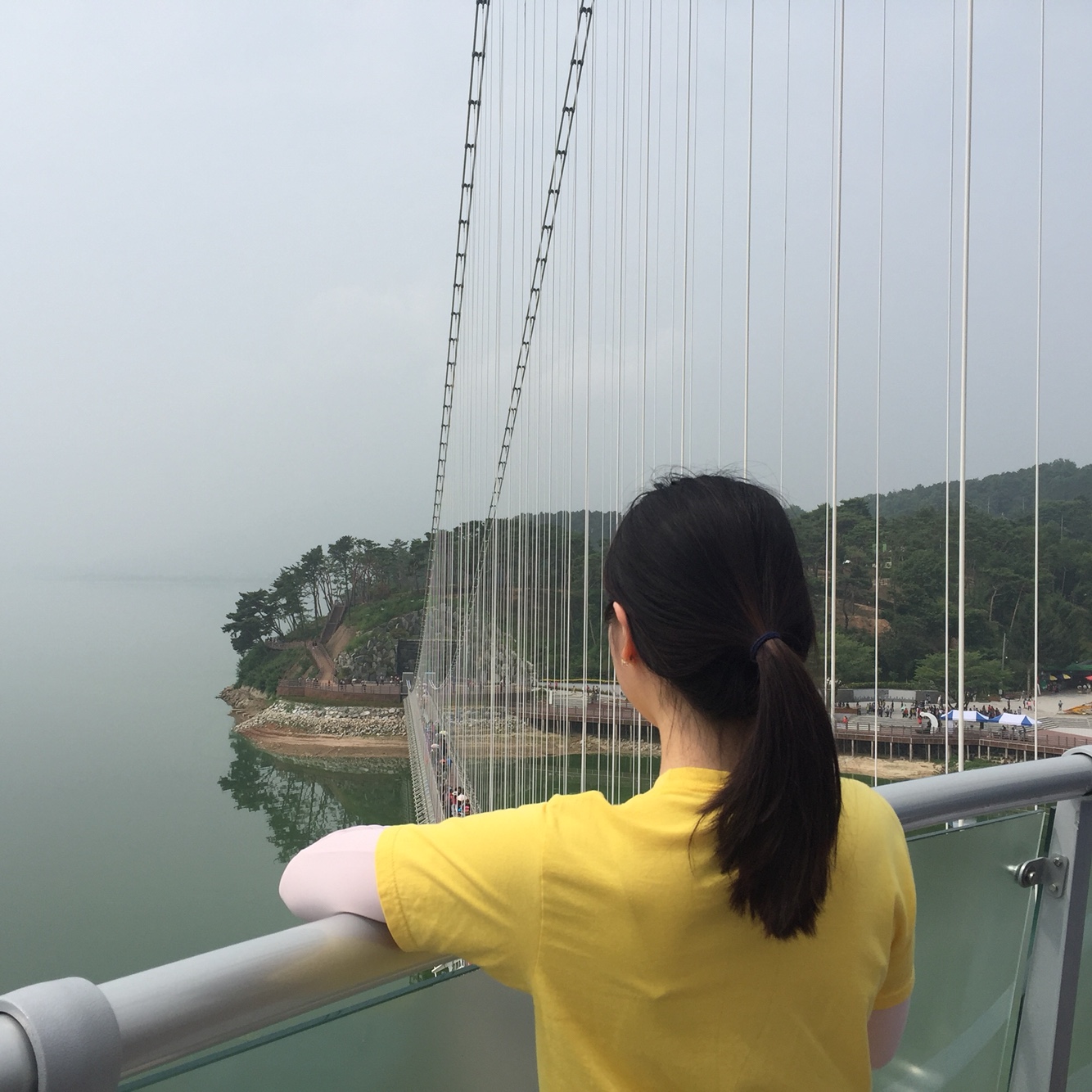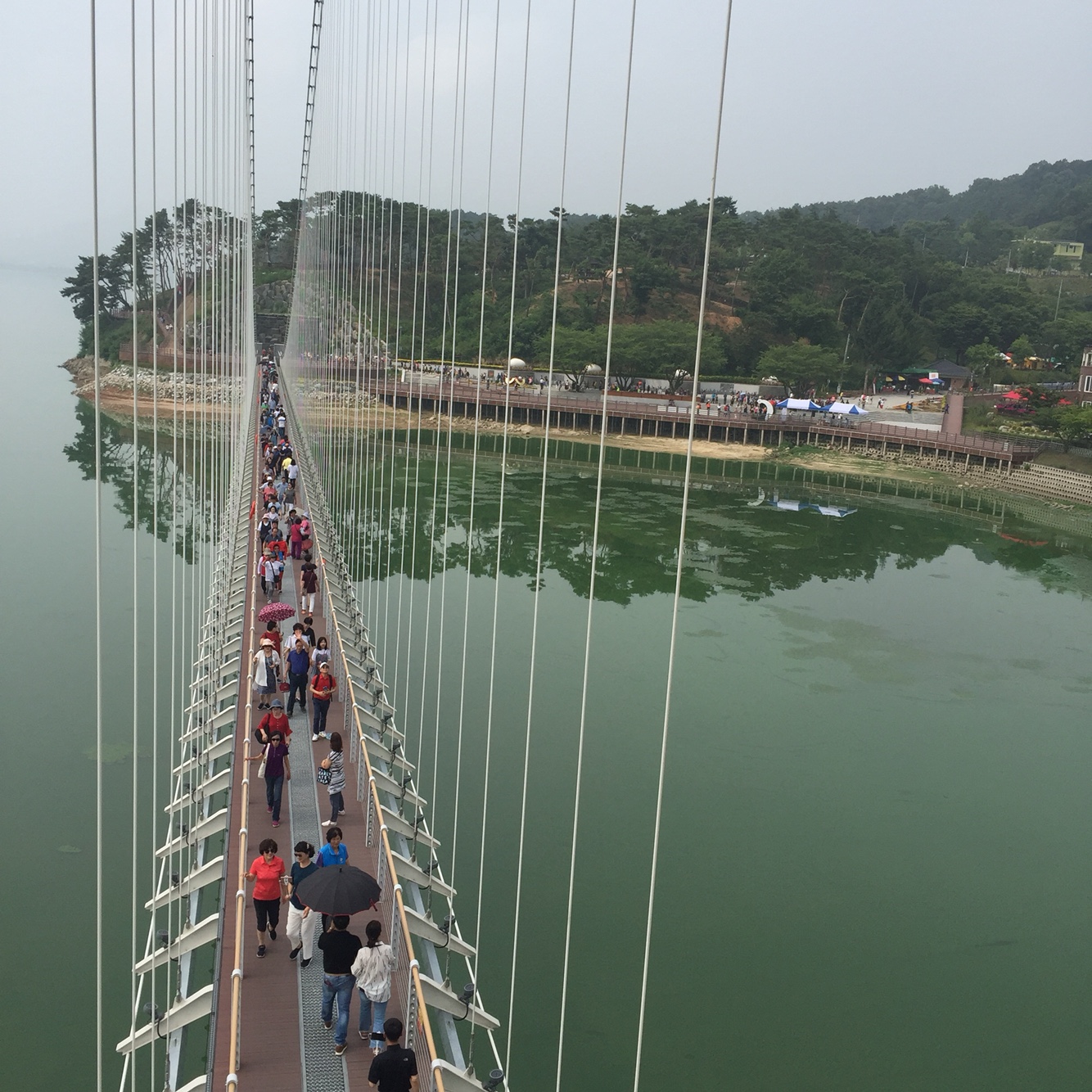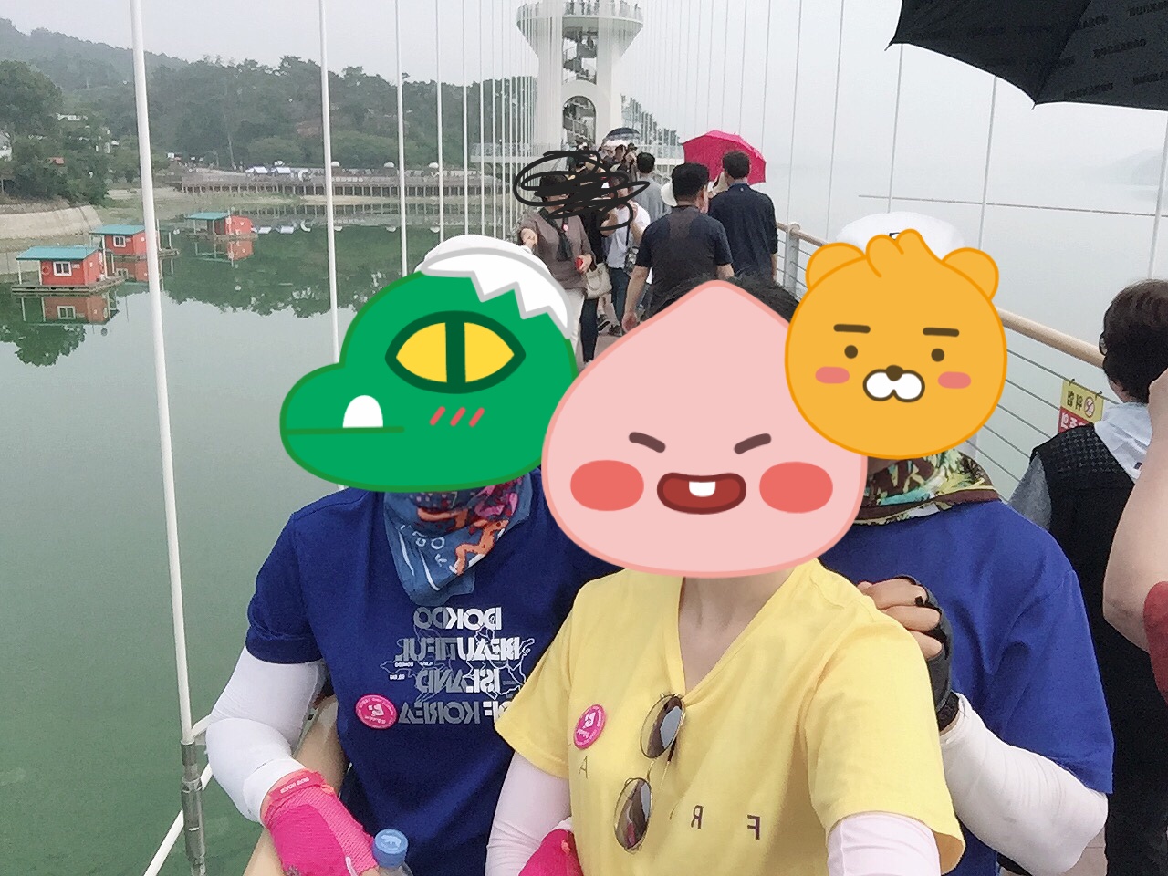 대구에서 버스로 3시간 반 정도 거의 쉴틈 없이 달려와 드디어 도착한 출렁 출렁 출렁다리! (버스에서 내려서 도보 5-10분 걸어야 함) 반동을 즐기기 전에 한컷