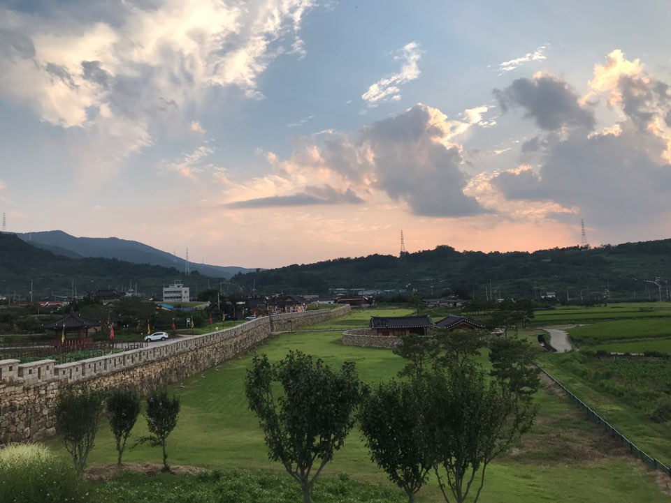 직거래장터에서 신선한 야채와 마른 약재들 그리고 군것질 거리를 싸게 구매했고, 코미디파크에서는 다양한 즐거움거리로 어머니와 학생시절로 돌아간듯 깔깔거리면서 체험하고 구경했다. 또하나 인상깊어서 지금도 핸드폰 바탕화면으로 깔아두고 있는 웃음 10계명 사진을 뒤로 한 채 먹거리타운에서 정말 운치있는 국악 공연을 관람한 후 저녁 어스름 해질녁 들판을 바라보면서 먹었던 버섯전과 메밀국수......