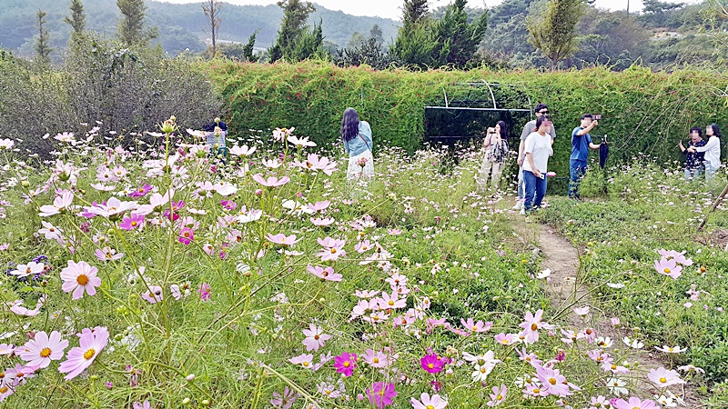 코스모스 물결과 메밀꽃, 핑크뮬리, 백일홍의 꽃향기에 흠뻑 젖고 청명한 가을날씨에 맘껏 휠링하고