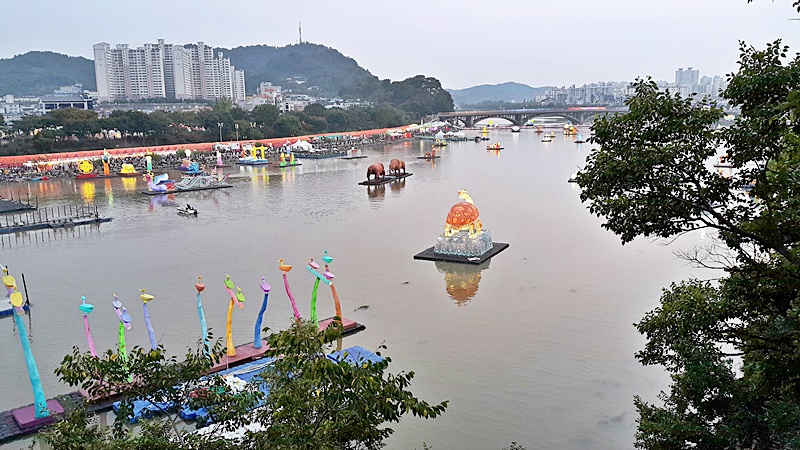 저녁에는 진주 남강에서 진수성과 촉석루를 배경으로 펼쳐지는 물과 빛의 조화에 험뻑젖어 본 하루.