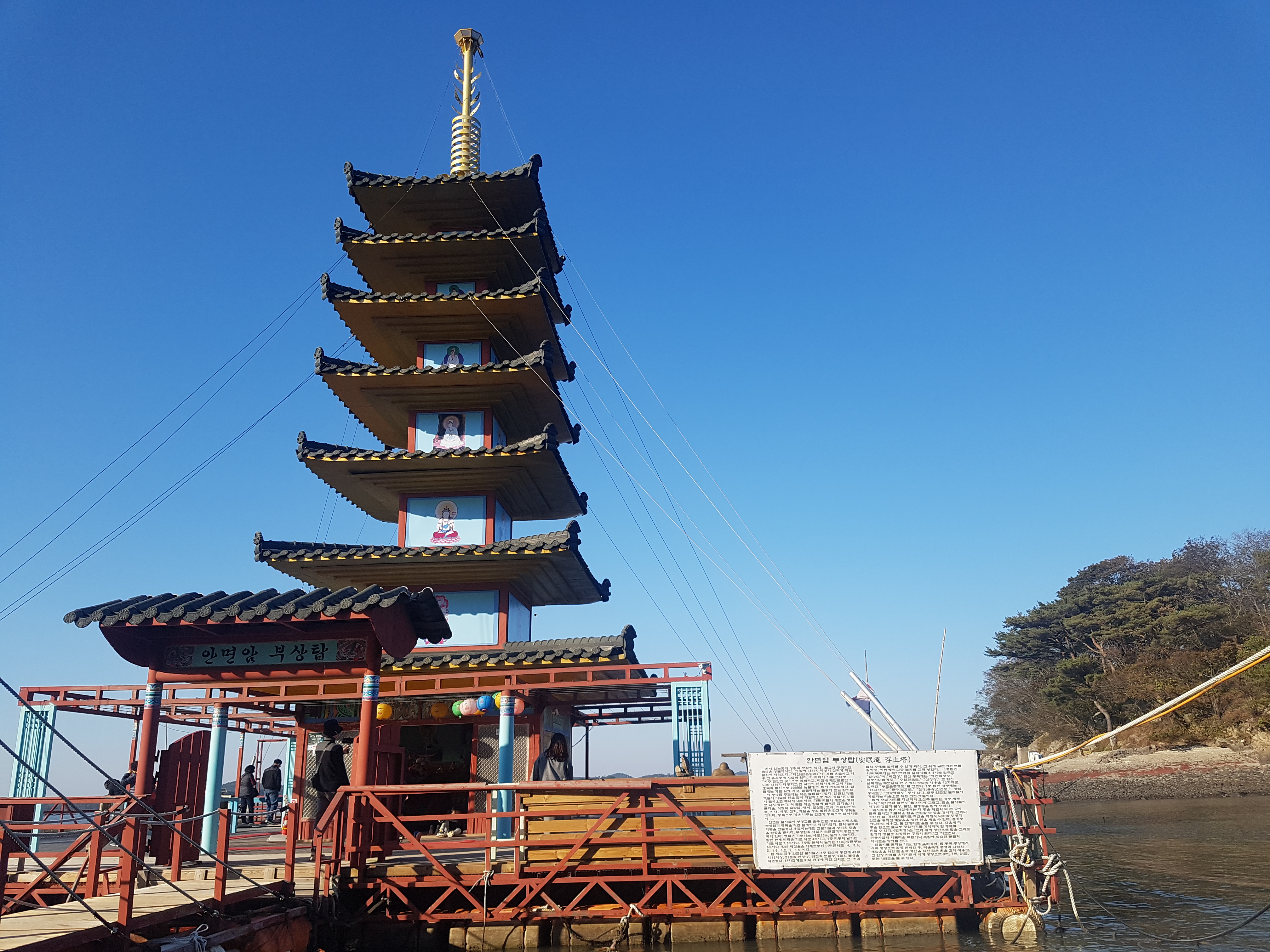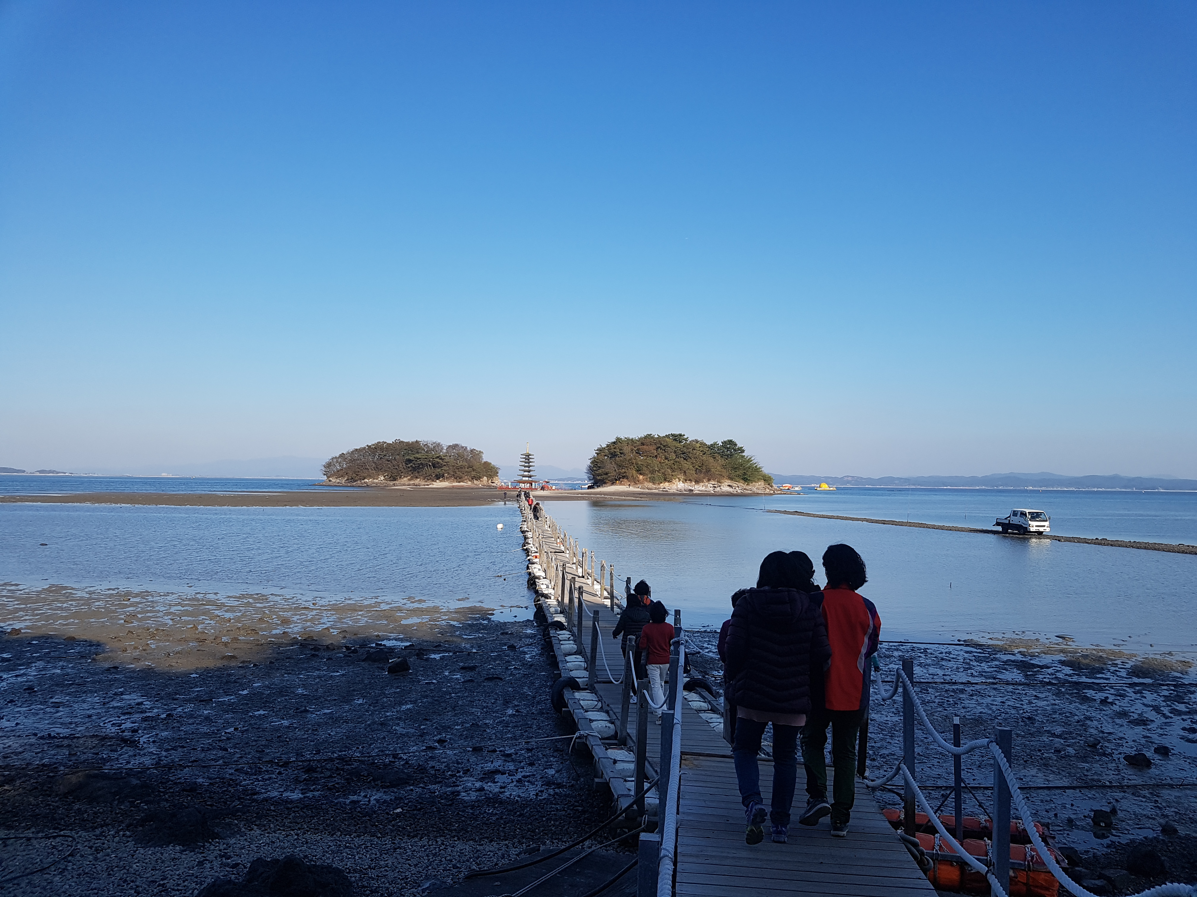 마지막으로 안면암과 태안 기름 유출 사건을 기린 부상탑을 보고 왔습니다. 밀물때는 물 위에 떠있어서 부상탑인데요 아슬아슬 부교를 지나 여우섬으로 가서 볼 수 있었습니다.