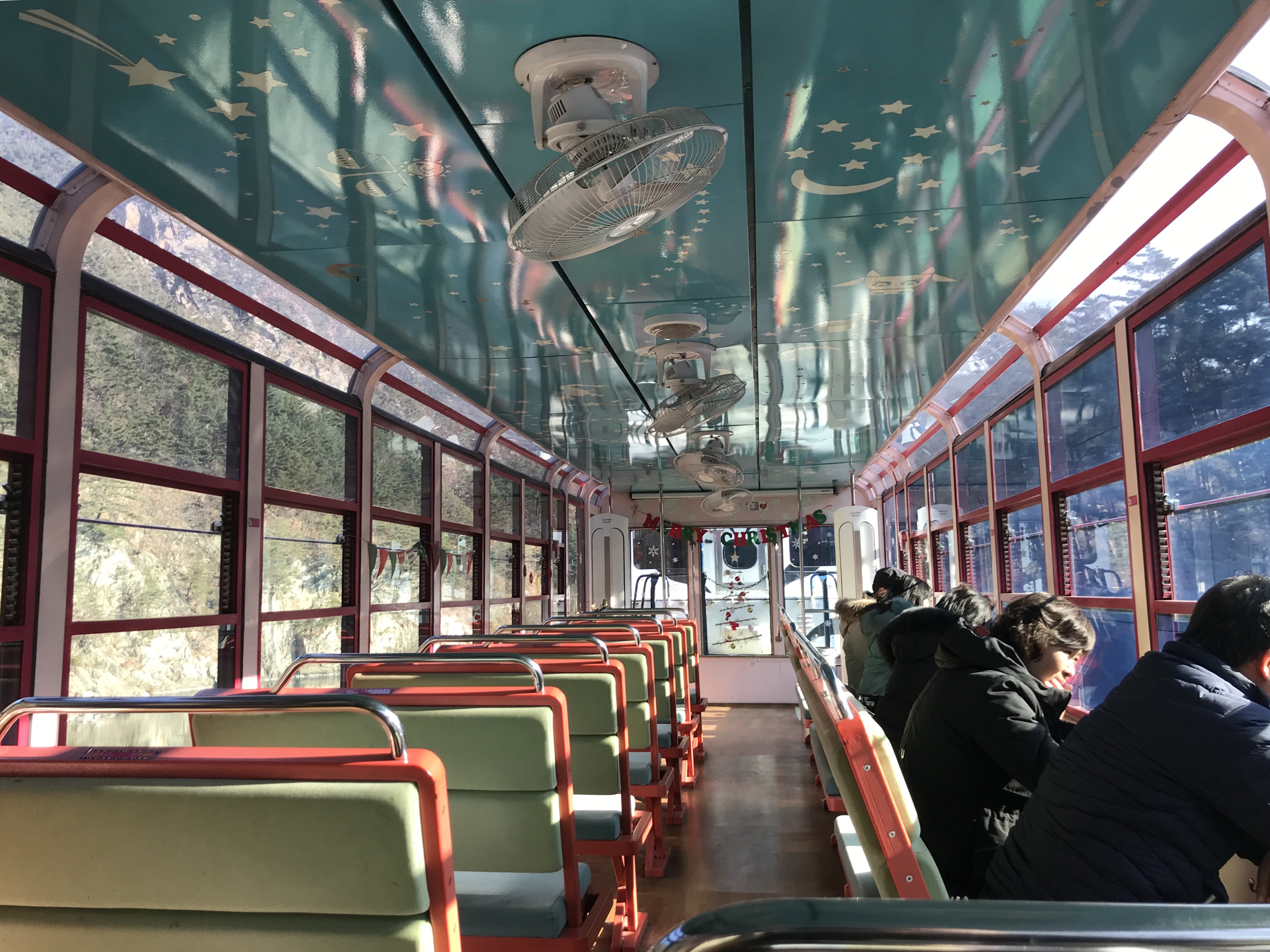 동대구역에서 무궁화호를 타고 분천역에 도착하여 협곡열차 탑승을 기다리는 동안 산타마을에서 산타와 멋진 사진도 찍었습니다 협곡열차는 앞을 보고가는 좌석도 있지만 바깥을 보며 가는 좌석도 있습니다 크리스마스가 다가오고 있어서 열차에서 캐롤이 나와 정말 낭만적이었습니다^^ 협곡열차를 타고 가다 어두운 터널을 지날때면 기차에 야광들이 밝아지는데 그 모습 또한 예쁘답니다 하이원곤돌라를 타고 마운틴탑으로 이동하니 스키장이 개장하여 눈이 예쁘게 쌓여있는 모습을 볼수있었고 평창 동계올림픽 마스코트인 수호랑,반다비도 있었습니다 마지막 코스인 황지연못으로 가서 황지연못 전설을 잘 느낄 수 있었고 황지 자유시장에서 추위를 녹일 수 있는 따뜻한 감자옹심이도 맛있었습니다! 아쉬운 투어를 마무리하고 저희는 동대구역까지 무사히 기차를 타고 왔습니다 정말 낭만적이고 재미있는 추천 일정 입니다 ^^