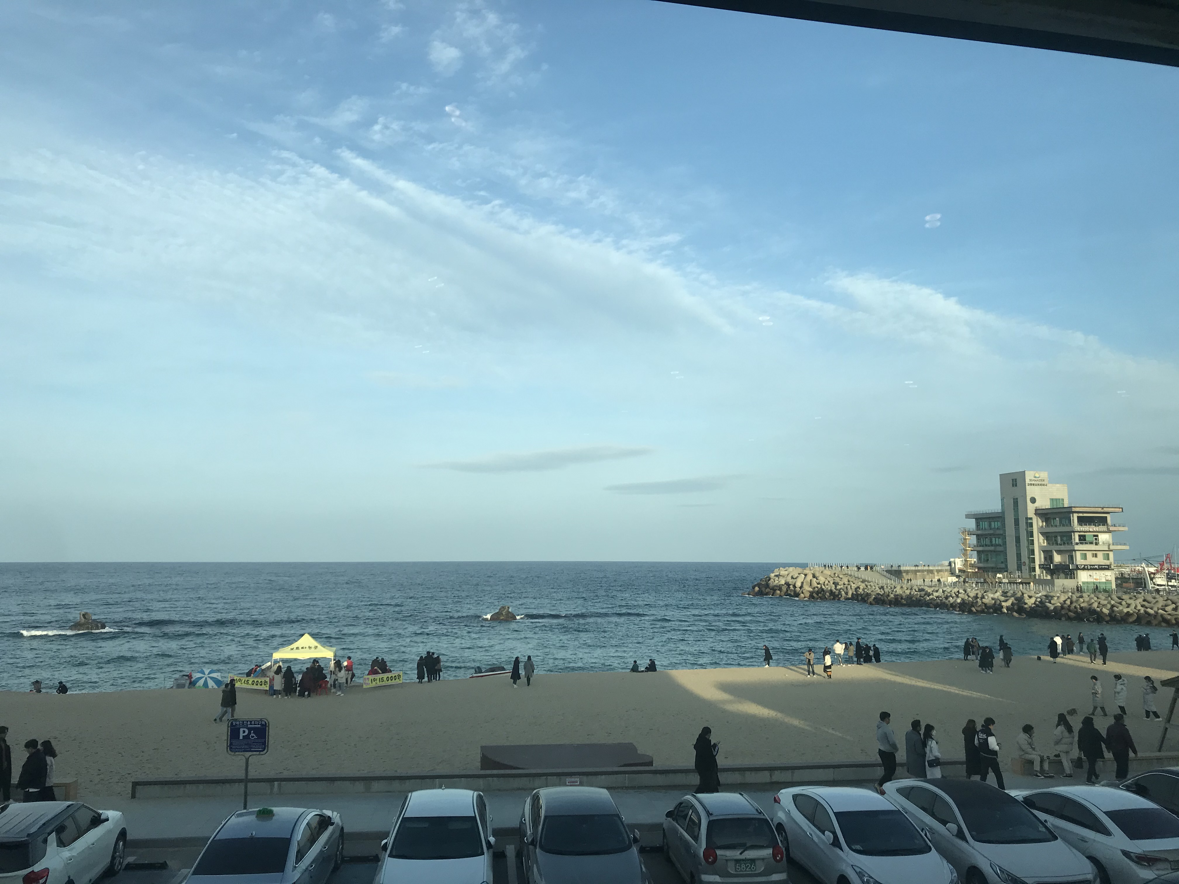 마지막 코스인 안목해변! 날씨가 춥지않아서 해변가에 사람들이 많았습니다