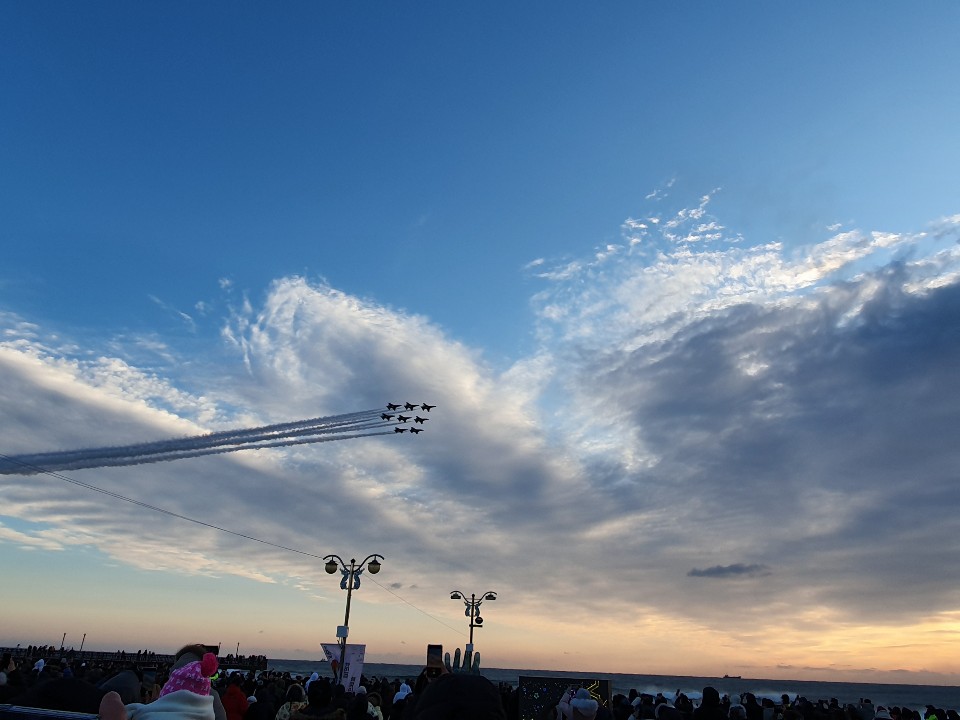 안녕하세요~ 호미곶 무박 2일 신청해서 햐멎아 보고 왔어요 여자친구랑 해맞이 보는건 처음이라 오랜만에 설레더라구요 ㅎ 현대백화점 맞은편에서 차량을 탑승하기로 했는데 제시간에 도착했구요 가이드님이 친절하게 대해주셨답니다. 안전하게 포항에 도착했어요. 도착해서는 바로 내려서 여기저기 구경을 했는데, 다양한 행사를 많이 하더라구요 그만큼 사람도 많아서 북적북적 거렸답니다. 여기저기 구경하다가 12시 되기 한 1분전에 밖에 나가서 카운트 다운 같이 세고 불꽃놀이도 봤어요 불꽃놀이는 뒤로 갈수록 더 재밌더라구요 ㅋ 처음에는 왜이렇게 조금씩 터뜨렸는지. ㅋㅋ 뒤로 갈수록 파파팡 했답니다! 불꽃놀이 본 뒤로는 차량에 다시 탑승해서 잠을 잤어요. 그리고 6시쯤 눈 딱 떠서 여자친구보고 나가자 하고 나갔어요~ 나가서 그 호미곶 앞에 큰 건물있죠? 거기 화장실 가려고 갔는데 여자줄은 길게 쫙 서있더라구요~~ 여기서 팁 한가지 드리면 1층보다 지하가 줄이 더 짧아서 지하로 가는게 더 빨리 화장실 갈 수 있을거에요 여튼 화장실 갔다가 다시 올라가서 떡국 먹을려고 했는데, 벌써 줄이 쫙~ 서 있더라구요! 줄 서는데 한 20분? ㅎㅎ 그 사이에 해가 밝아져 오더라구요 그래서 아 떡국을 지금 먹을까 아니면 가서 해 뜨는거 볼까 했는데, 그냥 떡국 먹었어요. 이 때 해가 7시 33분쯤 뜬다 해가지구요 해가 떳는데, 구름에 삺짝 가렸어요. 그래도 시간 지나서 보니 해가 보이더라구요~~ 해 구경하고 난뒤에 제트기 봤는데 멋있더라구요! 제트기 조종사가 하늘에서 새해인사도 해주니 좋더라구요~~ 제트기 보고 할 거 없어서 다시 차량에 탑승했어요. 포항 고속도로 까지 가는길이 꽉 막히더라구요 ~~ 여기서 1시간 넘게 걸린것 같았어요 고속도로는 그렇게 막히진 않았구요. 원래는 휴게소 가지 않겠다고 했는데, 포항에서 차가 막히다보니 경산휴게소 15분 정도 가게 해주시더라구요~~ 요런 배려가 너무 만족스러웠답니다. 기사님도 안전 운전 해주셨구요. 아 참! 그리고 가이드님이 안전벨트 매라고 얘기도 해주시고, 중간 중간에 차안이 추운지 더운지 물어봐주시고 세세하게 잘 인솔해주시더라구요~ 그리고 대구로 갈때 가위바위보 게임해서 이긴사람한테 영화표도 주던데.. 전 져가지구..ㅋㅋ 아쉬웠다는~~~ 여튼 호미곶 무박 2일 여행 너무 즐거웠고, 만족했던 여행후기였습니다. (밑에 사진은 순서 상관없이 막 올렸어요~~)
