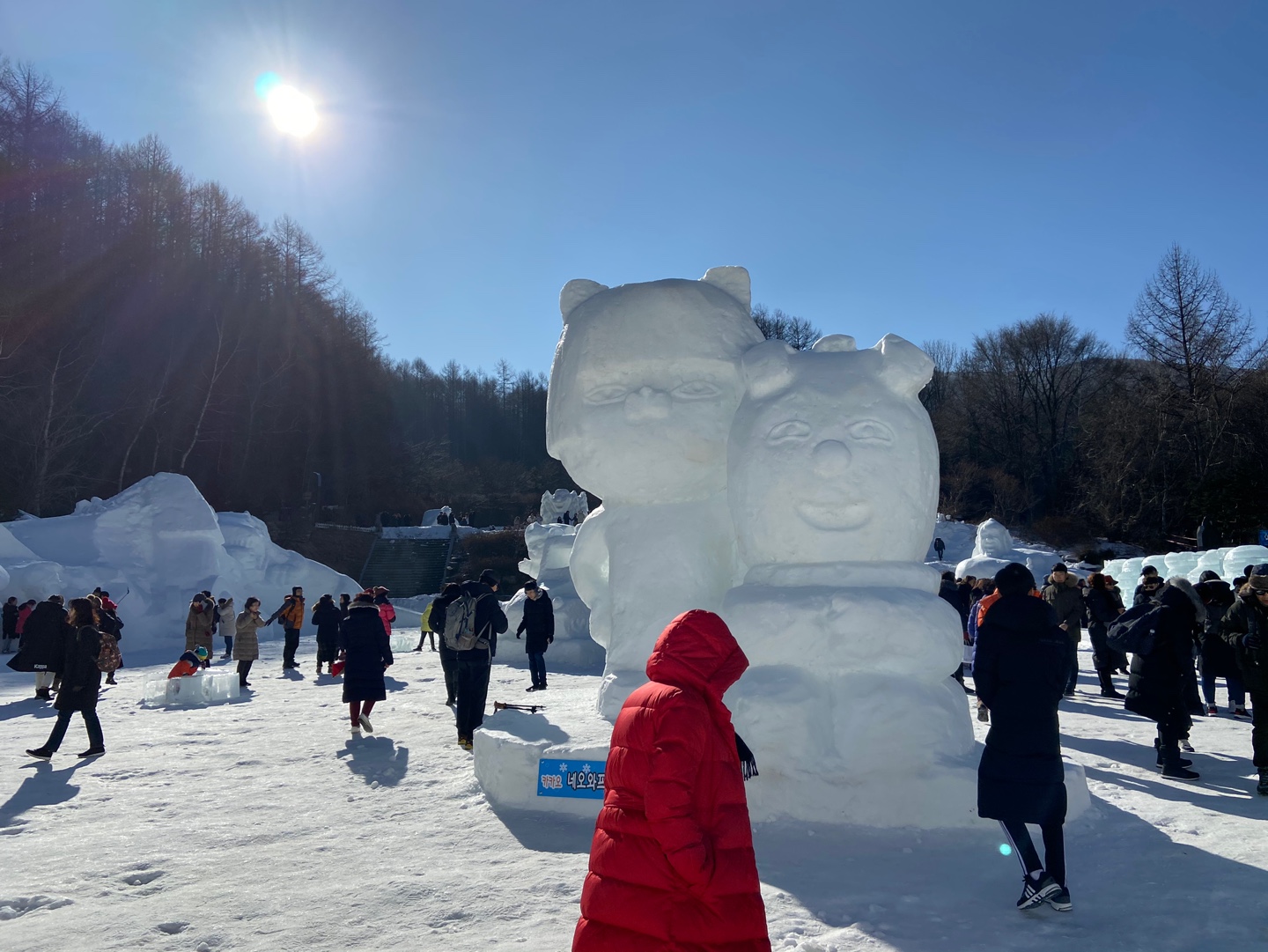 다양한 눈조각상과 얼음 조각상 앞에서 사진도 찍고 어떻게 만들었을까,,, 궁금증도 생기고 이것저것 볼 거리들을 즐기면서 행복한 시간 보내었습니다:) 다양한 먹거리뿐만 아니라 전국 각지에서 몰린 다양한 관광객분들의 에너지가 함께 전해지는 눈축제였습니다!! 그리고 이글루에서 맛본 커피의 맛은 또 색다른 경험이었습니다ㅎㅎ