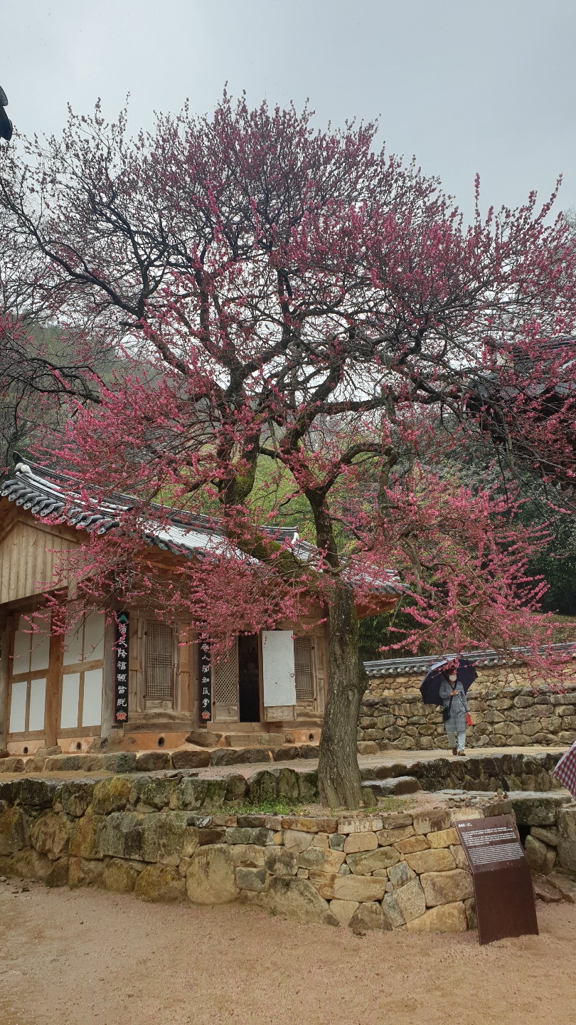 마음 설레는 계절 봄, 삼성여행사에서 남도여행 소식을 얄려왔다. <구례화엄사 흑매화, 산수유, 옥룡사지>여행코스였다. 봄비가 내렸지 만 남도의 봄을 찾아 딸과 함께 여행에 참여하였다. 예쁘고 친절한 가이드님, 베스트 드라이버 운전기사님과 함께 봄여행을 시작하엿 다. 먼저 봄의 전령사 산수유가 노랗게 물든 구례산수유마을에서 봄빛 가득받으며 노랑노랑물결에 취하였다 산수유사랑공원과 정자문화재 방호정주변의 벚꽃도 참 멋진 풍경이었다. 전국 산수유의 70%가 이곳에서 생산된다고 하였다. 화엄사로 가니 비가 내리기 시작했다. 화엄사의 각황사는 눈길을 압도하였다 유명한 화엄사의 홍매, 흑매앞에서 그 선명한 빛깔이 가슴에 새겨지며 감탄,감탄사를 찍었다. 유 서깊은 화엄사의 보물들과 아름다운 풍경을 감상한후 점심을 먹으러 이동하였다. 점심은 여행사에서 제공한 산채비빔밥을 먹엇는데 봄 나물향기가 좋은 봄밥상이었고 참 맛잇었다. 점심식사후 광양 옥룡사지절터로 이동하였다. 문화해설자님과 함께 동백숲길을 20여분 올 라가서 옥룡사지절터의 유래를 들었다. 7000여그루의 동백나무와 동백꽃과 함께 하며 멋진 동백풍경에 푹 빠졌다. 섬진강변 화려한 벚꽃 길을 꿈길처럼 달려 광양불고기특화거리로 이동하였다. 여러 식당가운데 우리는 매실한우라는 곳으로 가서 한우 불고기와 냉면을 먹엇 다 얇게 썬 한우를 먹기직전 양념하여 청동석쇠에 살짝 구워먹는 맛이 일품이었다 광양 불고기특화거리앞 서천 꽃길은 봄비로 꽃비가 내 렸다. 광양에서의 시간을 마무리하고 귀가길에 올랐다. 빗길을 달려 2시간반만에 현대백화점건너에 내려 여행을 마무리하였다. 봄비가 내렸지 만 마치 봄꽃측제처럼 산수유, 동백, 벚꽃, 홍매화속에서 행복한 시간을 보냇고 유서깊은 화엄사 옥룡사지에서의 시간들은 유익하고 의미 있는 시간이었다. 딸과 함께 했던 멋진 봄여행, 두고두고 멋진 추억이 될 여행을 만들어준 삼성여행사에 감사드린다. 앞으로 또 좋은 여정 에 함께 하고싶어요 감사합니다