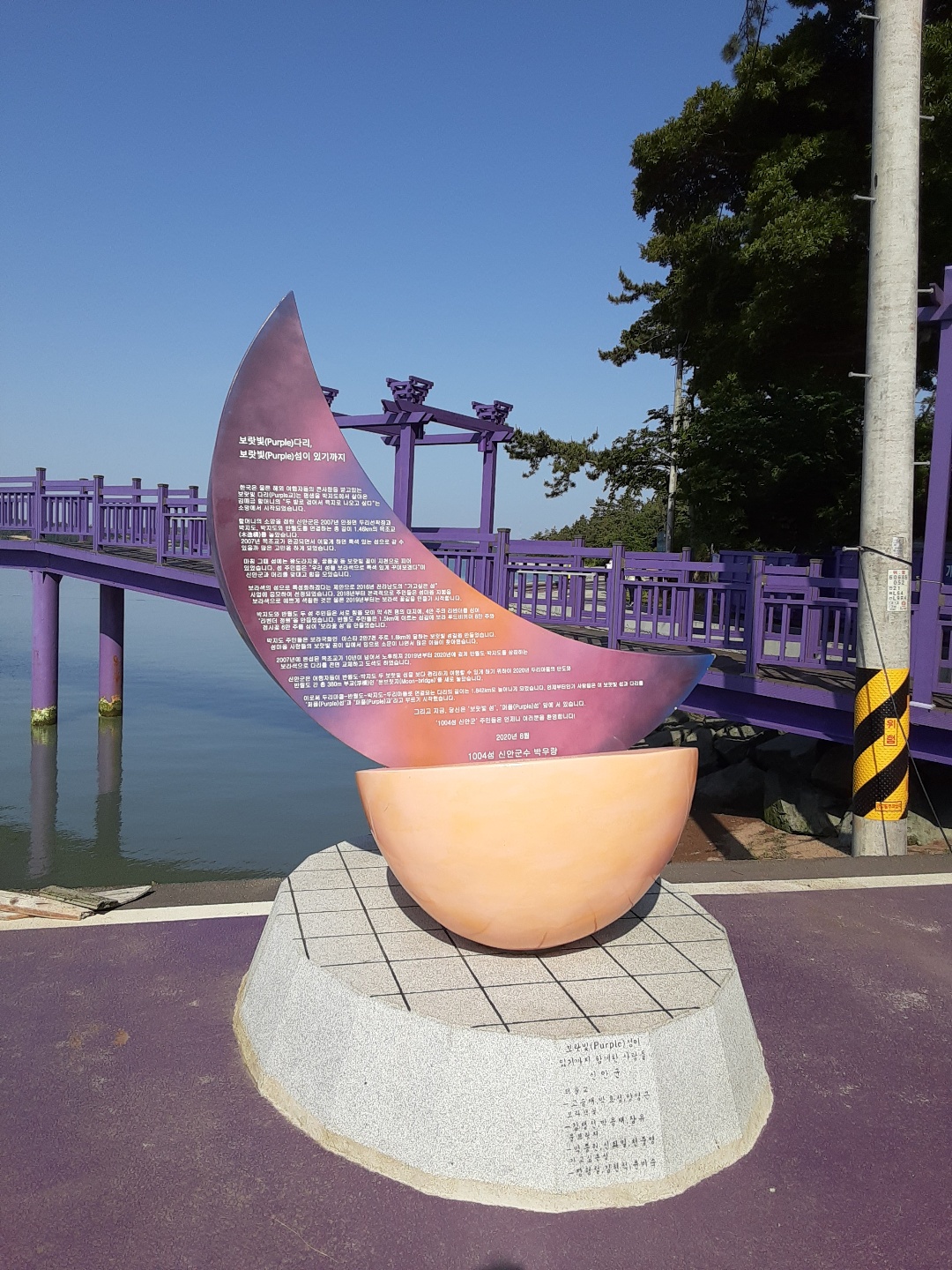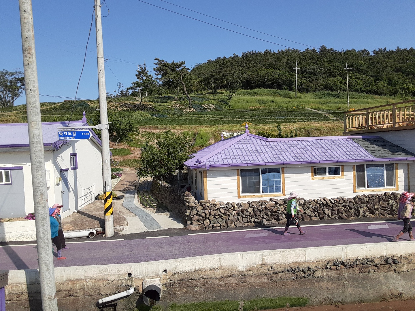 보랏빛 섬의 유래가 적혀있네요 평생을 박지도에서 살아온 김매금 할머니께서 "두발로 걸어서 육지로 나오고 싶다"는