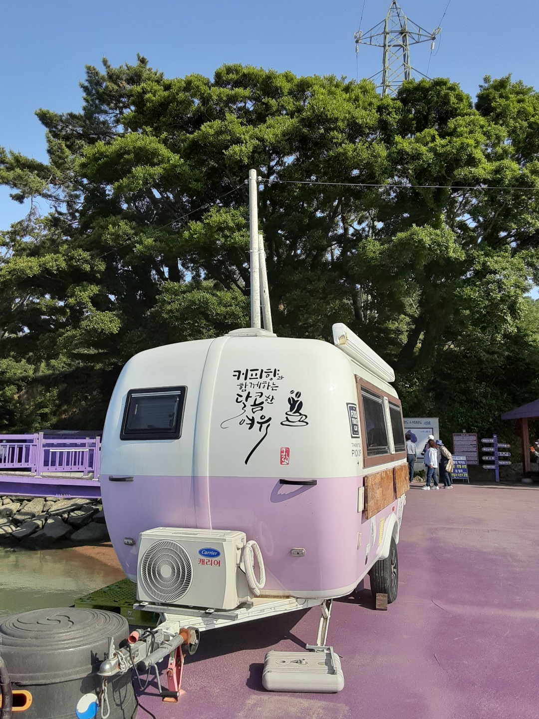 깜찍한 자동차에서 한잔의 커피를 구입하여 퍼플교를 건너던중  마음에 드는 문구(추억의 자리)가 있는 쉼터