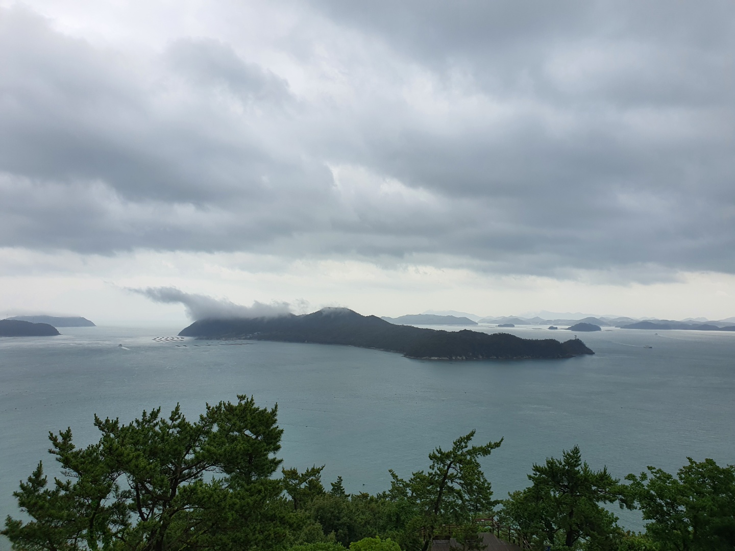 대흥사 코스때까지는 돌풍을 동반한 비바람이 오락가락했었는데, 그덕분인지 산자락 주변에 안개가 내려앉은모습이