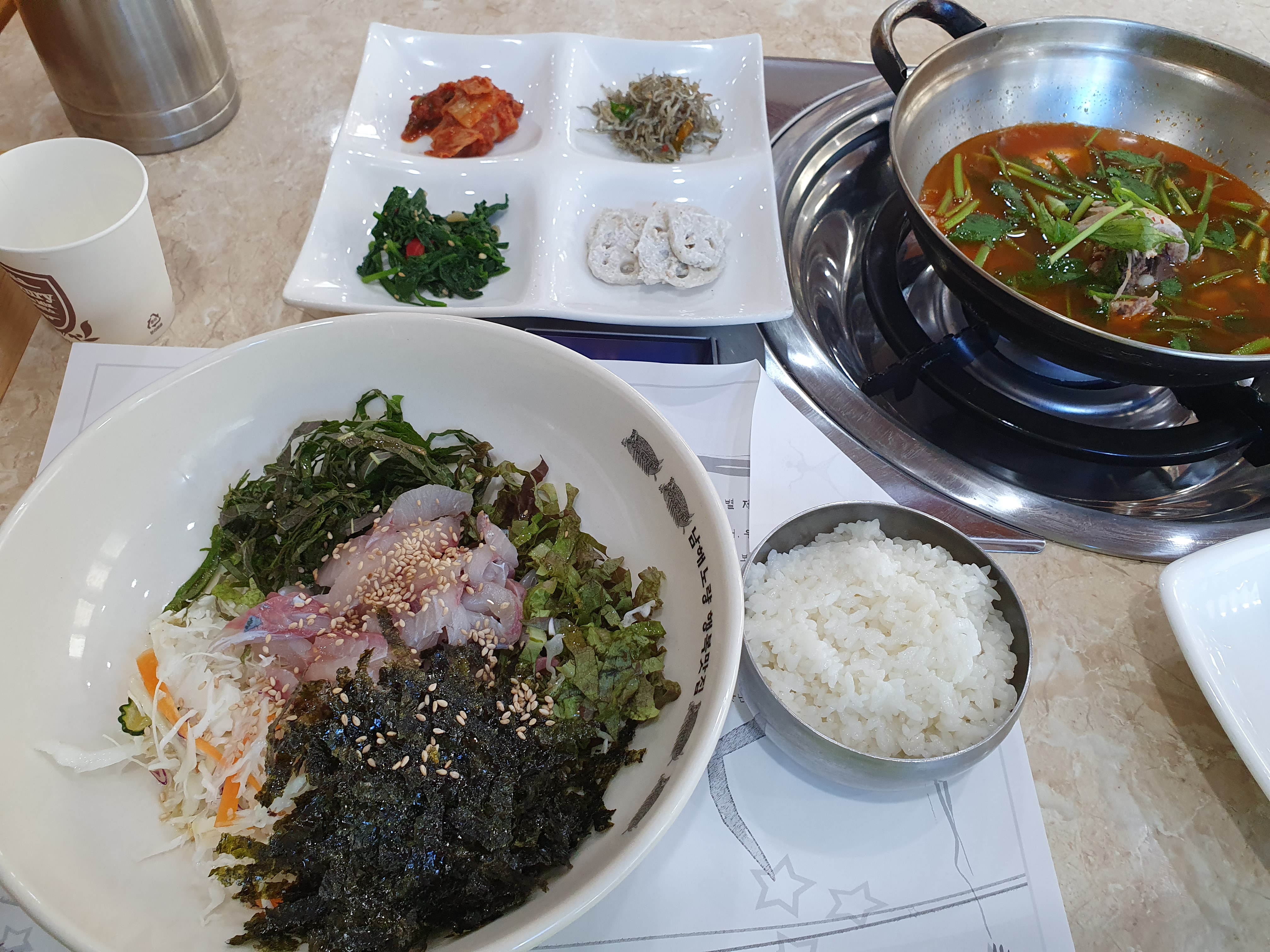 보리암에서 남해의 멋진 경치도 보구요. 남해대교 식당가에서 물회도 먹었습니다