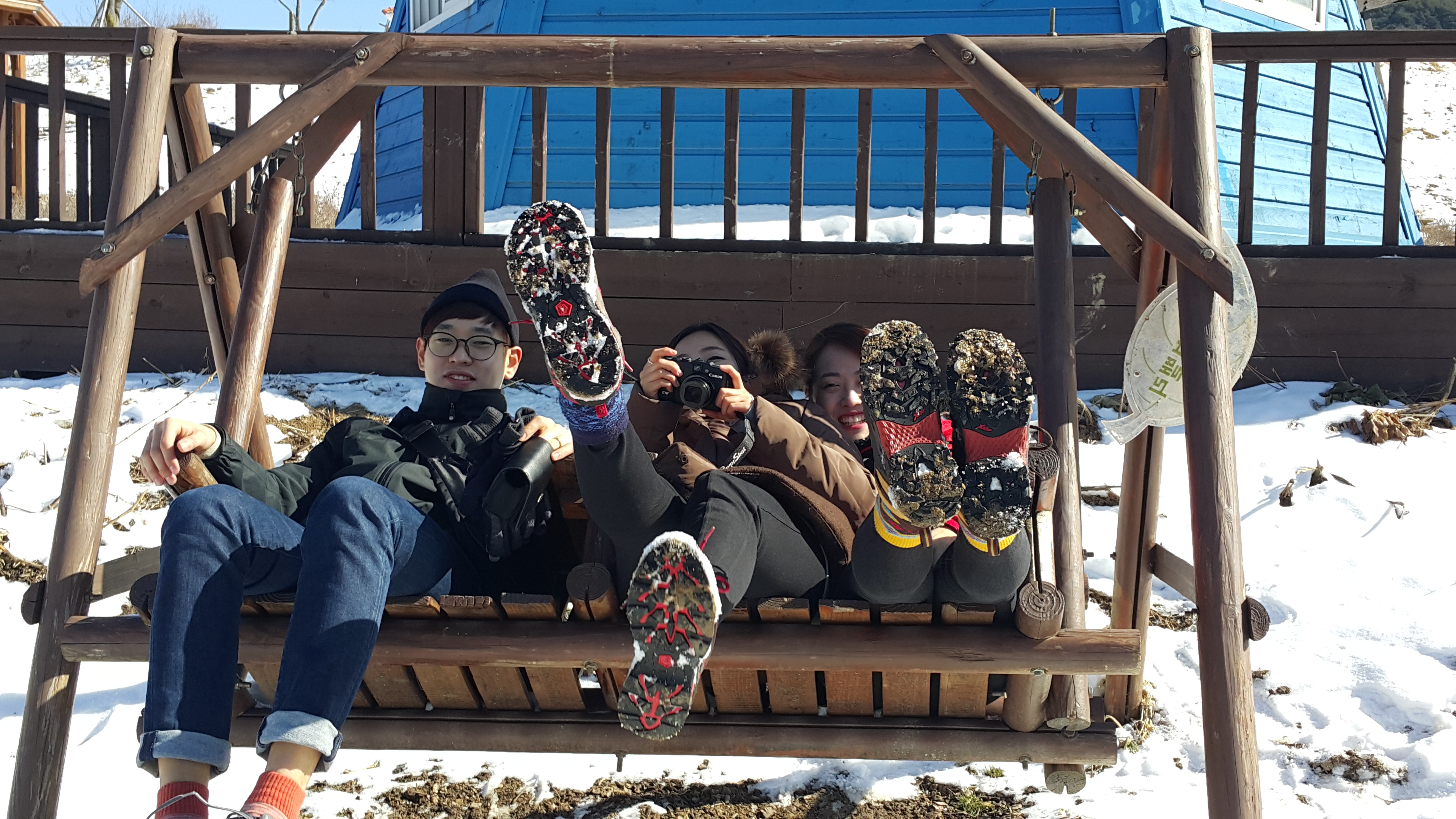 그네의자에 앉아서 그네도 타고 눈싸움도 하고 신나게 놀았어요!