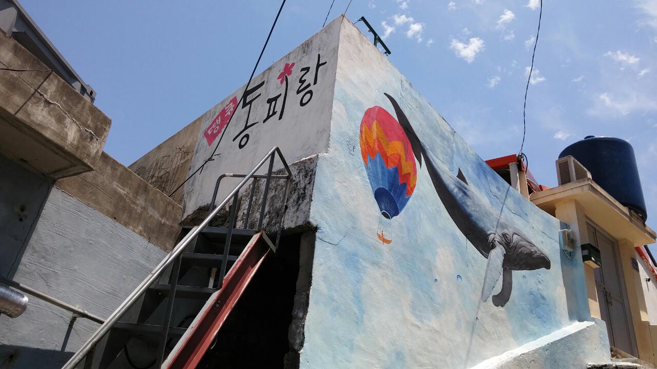 실제 통영 주민들이 사는 마을의 집 벽에 다양하고 재미있는 주제로 벽화나 트릭아트를 그려 놓아 가족, 연인, 친구끼리 사진